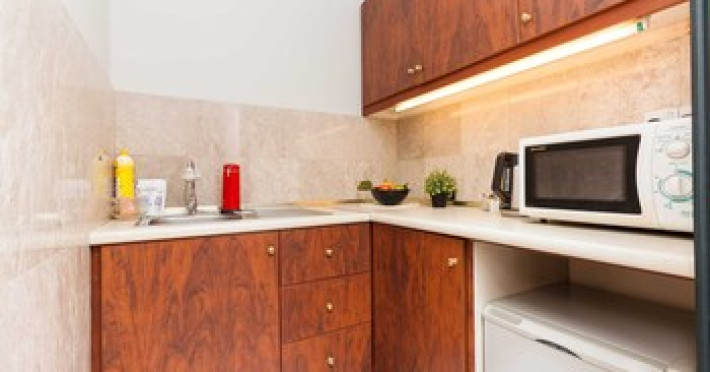 Rooms Make yourself comfortable in this air-conditioned apartment, featuring a kitchenette with a full-sized refrigerator/freezer and a stovetop. A flat-screen television with cable programming provides entertainment, while complimentary wireless internet access keeps you connected. Conveniences include a desk and a microwave.