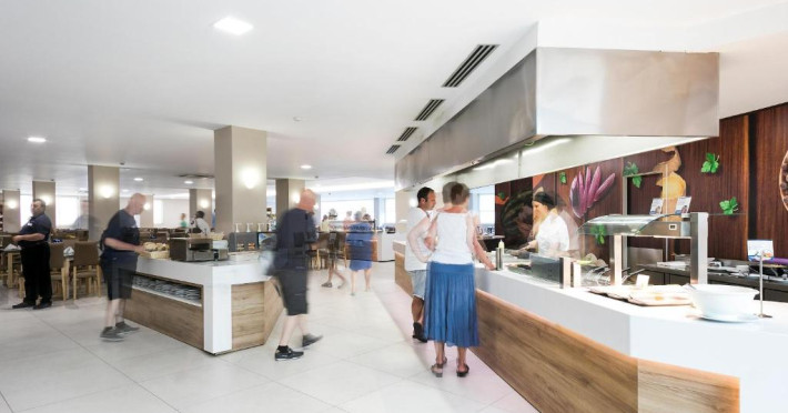 Hotelul are un restaurant tip bufet, care servește preparate din bucătăria locală și internațională. Există, de asemenea, o cafenea și un lounge bar.