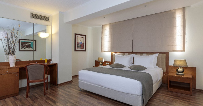 Descriere: Hotelul complet renovat, opereaza tot anul si este foarte bine localizat aproape de principalele atractii din centrul orasului Rodos. Localizare: in centrul orasului Rodos, la 400 m distanta de orasul medieval si la 150 m de plaja cu nisip si pietricele, la 14 km de aeroport. Durata transfer: intre 20 si 40 minute.Plaja cu nisip si pietricele este situata la 150 m distanta. Pentru sezlonguri si umbrele pe plaja se plateste suplimentar. Caracteristici hotel: 136 camere,wi-fi gratuiut in toate zonele publice, restaurant, 2 baruri, piscina in aer liber cu jacuzzi (aprilie-octombrie), sezlonguri si umbrele la piscina gratuit, prosoape pentru piscina (cu depozit),sala vizionare TV, camera pentru bagaje, 2 sali de conferinte echipate (pentru 150 persoane), facilitati pentru banchete, inchirieri de masini. Camerele: Cele 136 de camere sunt de 2 categorii: camere duble (25 mp) si camere duble folosite ca single (25 mp). Camerele standard sunt echipate cu: aer conditionat, baie cu cada sau dus, uscator de par, telefon, minibar, seif, TV satelit, birou, facilitati pentru preparare ceai/cafea, balcon, Clasificarea oficiala a hotelului in Grecia: 4*. Nota: pentru anumite facilitati, hotelul poate solicita taxe suplimentare; in momentul sosirii la hotel, solicitati receptiei sa va informeze cu exactitate asupra lor. Page web: www.rhodesplazahotel.com