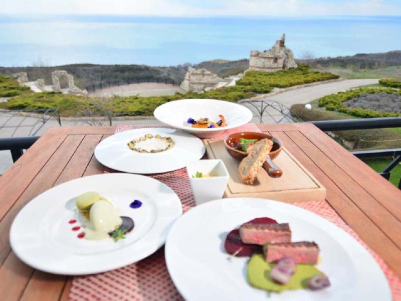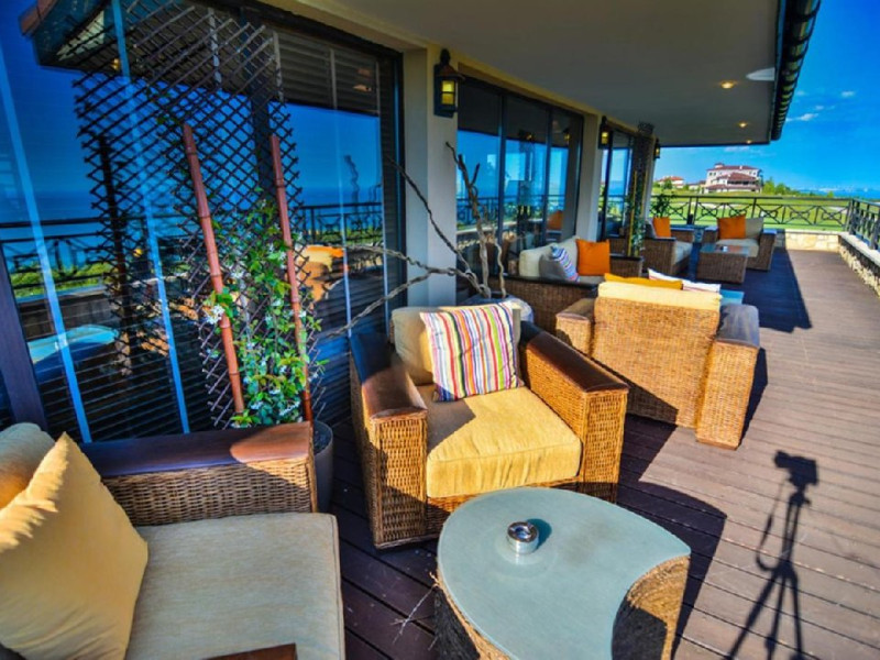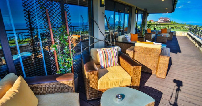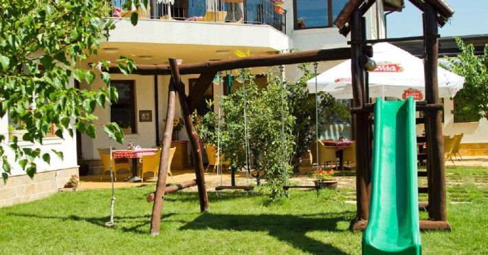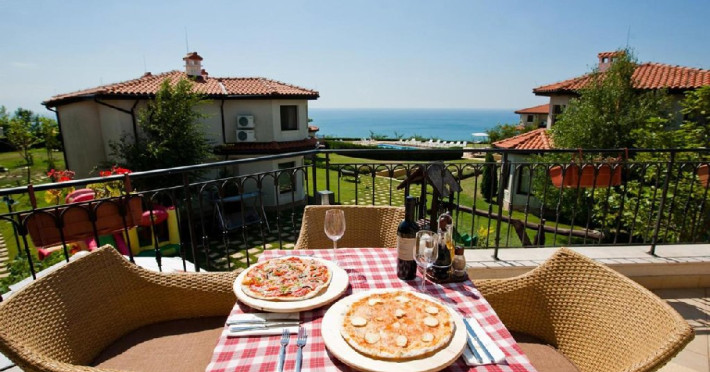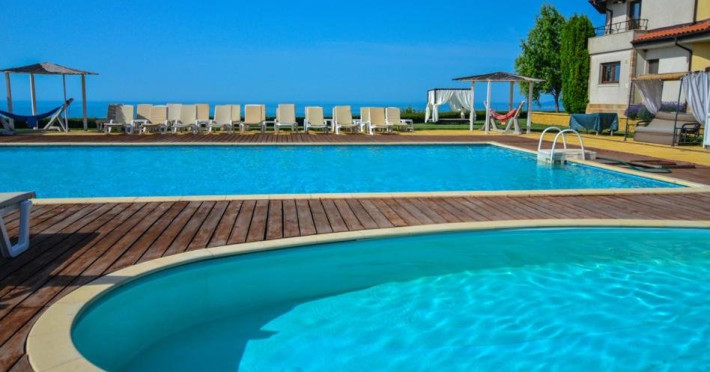 Descriere: BlackSeaRama Golf and Villas din Balcic este un frumos complex ce ofera camere moderne si elegante in vile spatioase. Localizare: BlackSeaRama este un hotel situat la 7 km de plaja. Facilitati hotel: Hotelul pune la dispozitia turistilor centru spa, seif la receptie, wifi, ATM, parcare, piscina exterioara, sauna, fitness, jacuzzi, restaurante si bistrouri. Restaurantele si bistrourile de la BlackSeaRama creeaza atmosfera perfecta pentru a degusta preparate delicioase, in acest complex construit in stilul vilelor toscane si inconjurat de podgorii. Terenul de golf este cea mai mare atractie, fiind primul teren pentru campionate de golf din Bulgaria. Printre alte activitati oferite se numara tenis si ciclism. Site oficial: http://www.blacksearama.com/