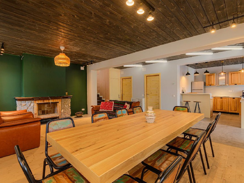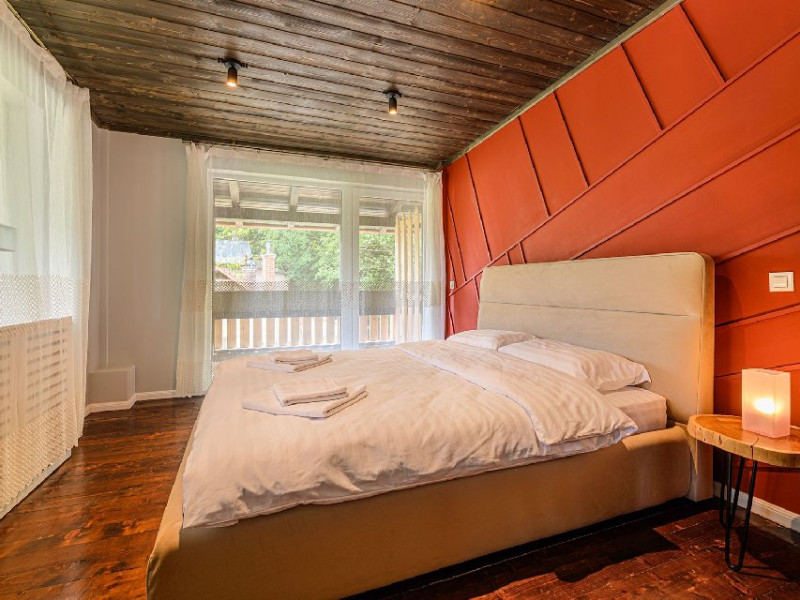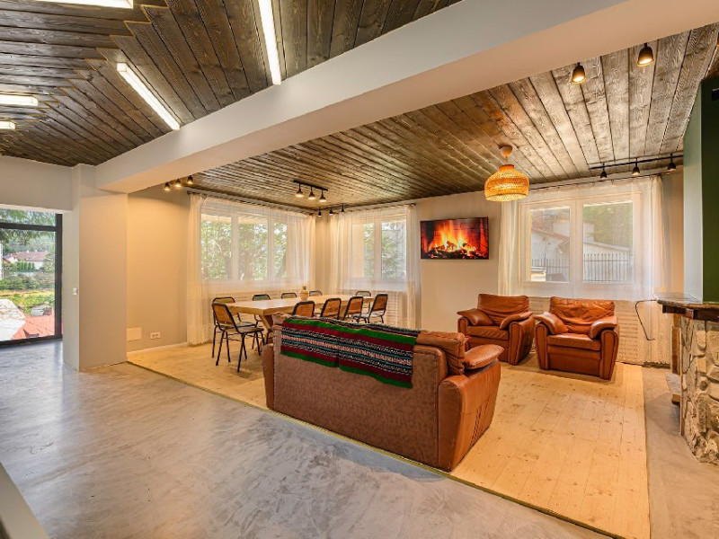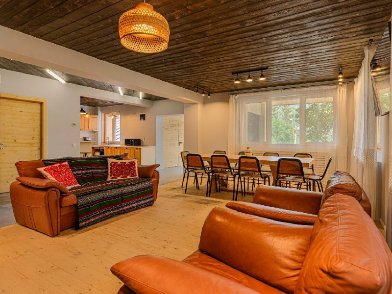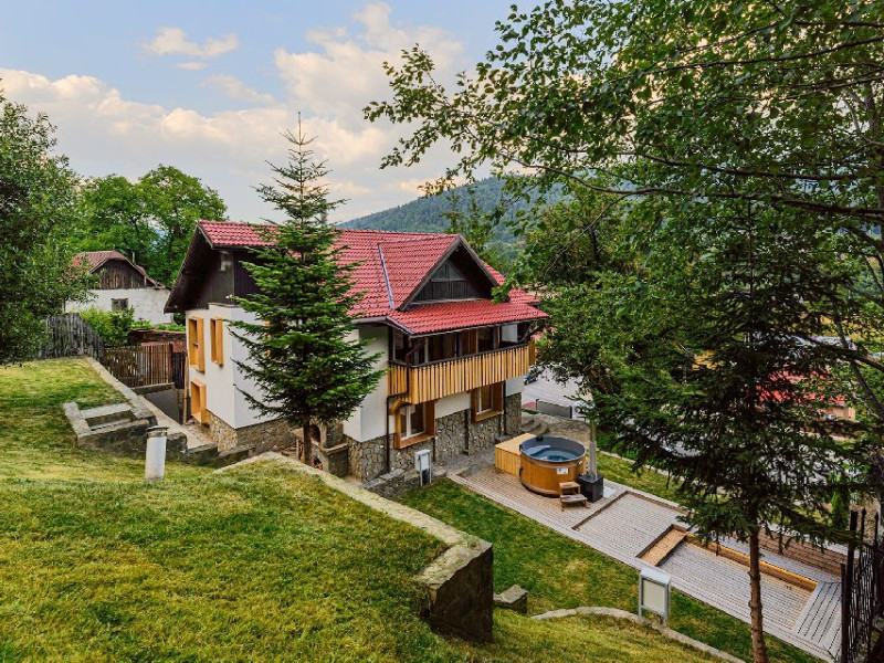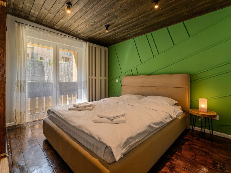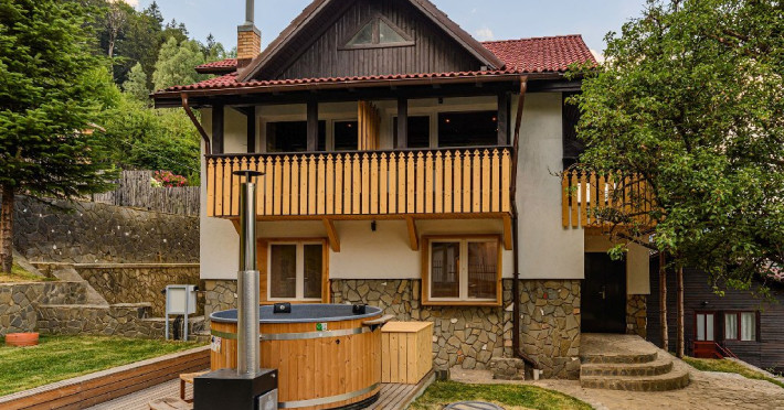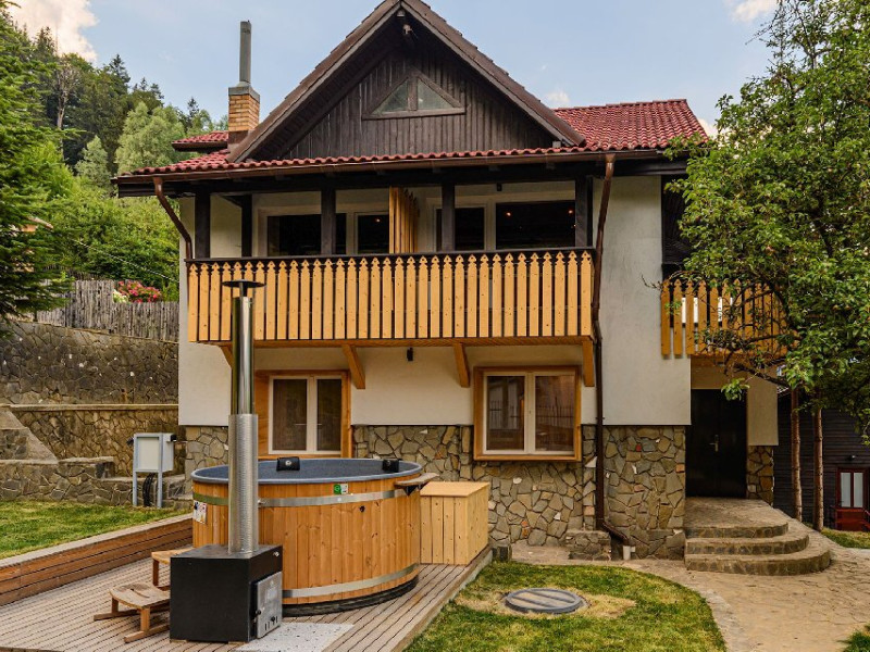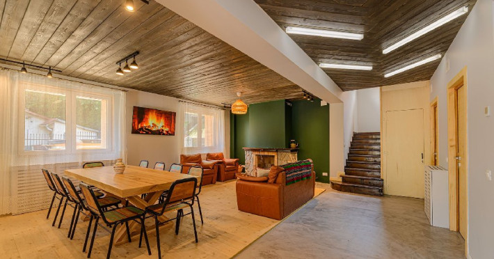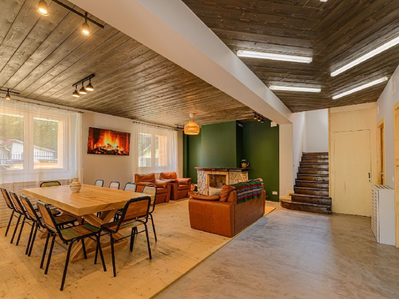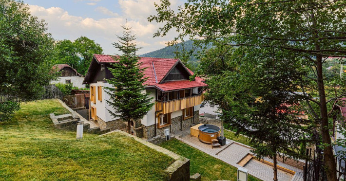 INFORMATII GENERALE Blend Mountain se afla la intrarea in statiunea Busteni, pe partea stanga pentru cei care vin dinspre Bucuresti si la iesirea din Busteni pe partea dreapta pentru cei care vin dinspre Brasov. Accesul in curte se face direct din DN 1.DESCRIERE UNITATE DE CAZARE Arhitectura si designul de munte in stil modern ofera oaspetilor posibilitatea sa beneficieze de un spatiu de cazare cochet, complet mobilat si utilat, pentru o vacanta la munte de neuitat. FACILITATI UNITATE Turistii au la dispozitie parcare, internet WI-Fi, o bucatarie comuna complet utilata, cu o zona de luat masa si 2 bai comune una la parter, iar a doua la etaj. Pentru un plus de relaxare ciubarul exterior este alegerea perfecta. DESCRIERE CAMERE Cu o suprafata de 15 m, camerele sunt mobilate cu paturi matrimoniale de 160 x 200 si dulap pentru haine. Fiecare camera a fost vopsita diferit tocmai pentru a oferi o experienta diferita. - Camera Blue - amplasata la parter; - Camera Green - amplasata la etaj dispune de balcon; - Camera Blue Marine - amplasata la etaj dispune de balcon; - Camera Gray - amplasata la etaj dispune de balcon; - Camera Red - amplasata la etaj dispune de balcon. Camerele NU dispun de baie proprie, exista 2 bai comune una la parter, iar a doua la etaj. LOCALIZARE Blend Mountain se afla la intrarea in statiunea Busteni, pe partea stanga pentru cei care vin dinspre Bucuresti si la iesirea din Busteni pe partea dreapta pentru cei care vin dinspre Brasov. Accesul in curte se face direct din DN 1. ATRACTII TURISTICE Muzeul Memorial Cezar Petrescu, Crucea de pe Caraiman, Castelul Cantacuzino, partia Kalinderu (1500 metri, dificultate crescuta), Cascada Urlatoarea, Pestera Ialomitei, varful Babele, Sfinxul din Bucegi, Biserica Domneasca - Nasterea Maicii Domnului, Manastirea Caraiman - Inaltarea Sfintei Cruci, Manastirea Ialomitei. POLITICI Nu sunt permise animalele de companie. SERVICII DE MASA Nu se asigura servicii de masa, insa turistii au la dispozitie o bucatarie comuna. FACILITATI COPII Copiii se pot caza in aceasta locatie.