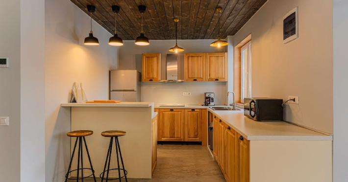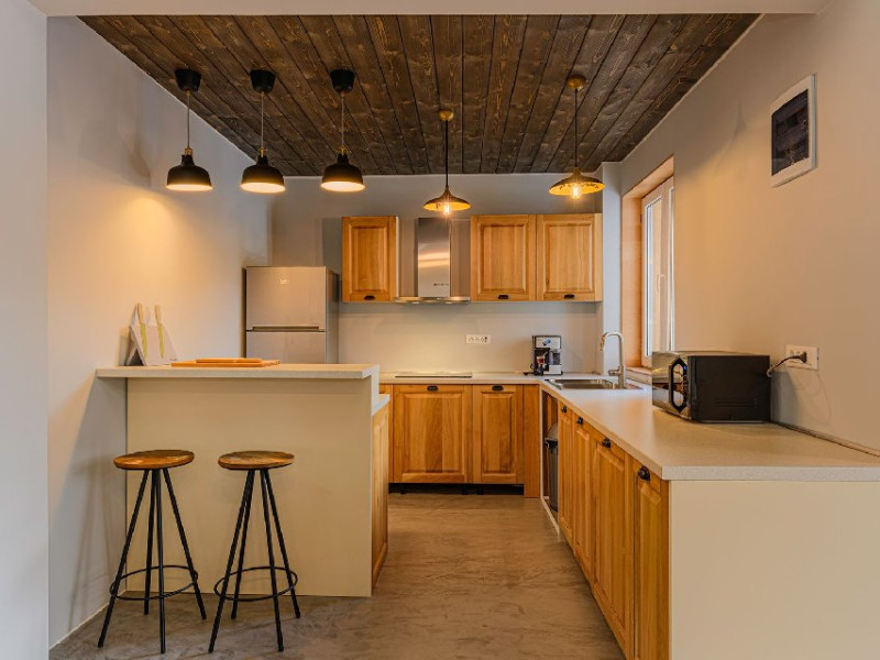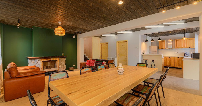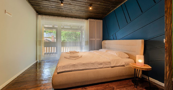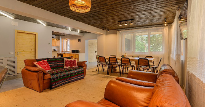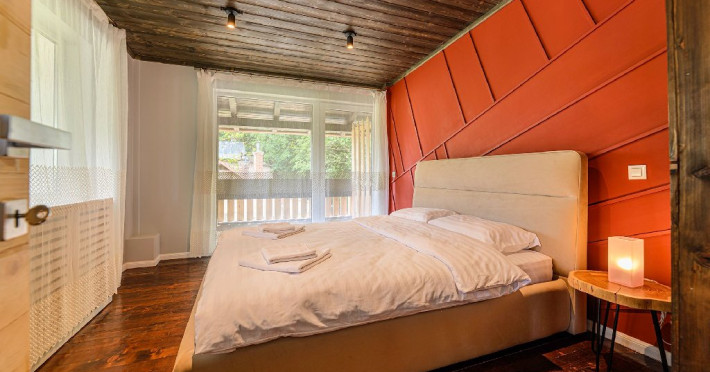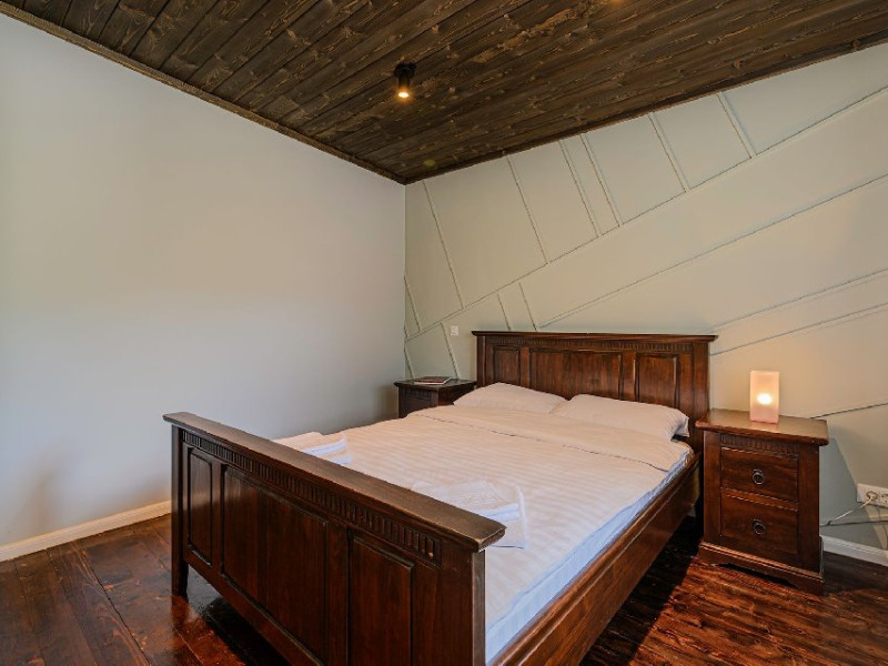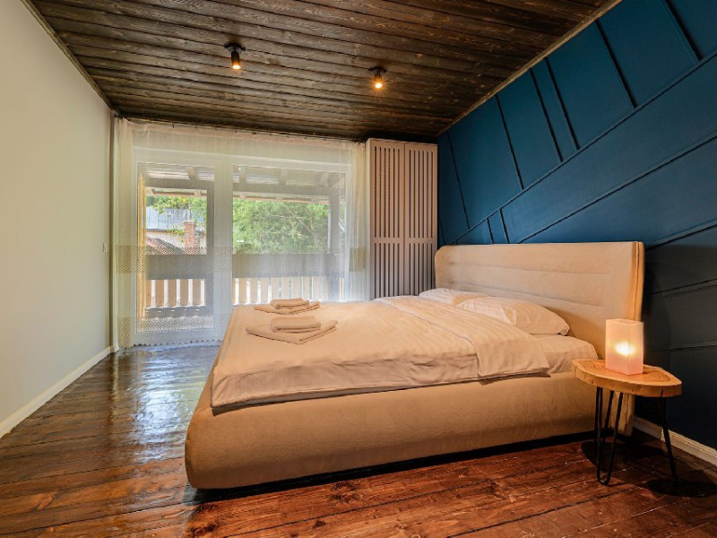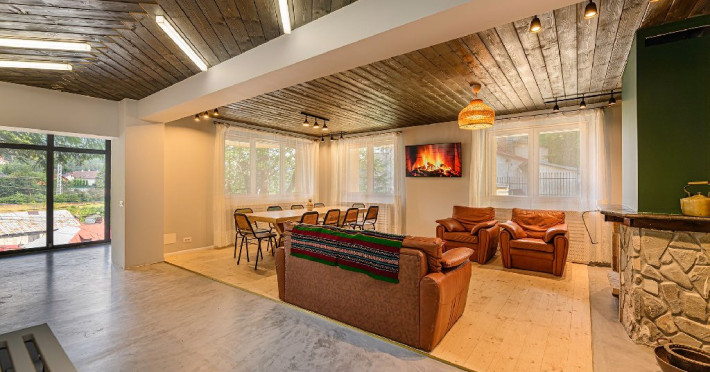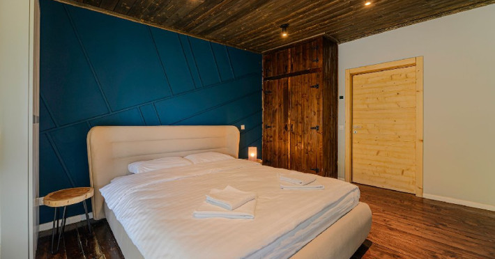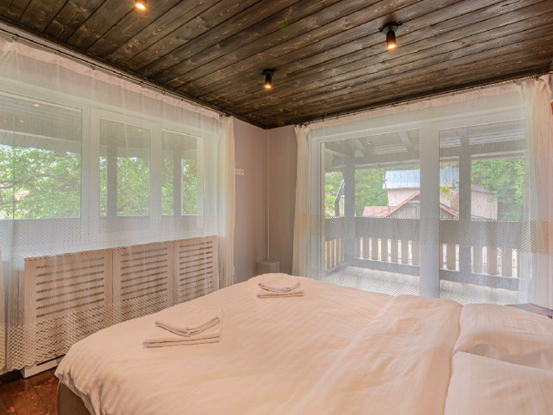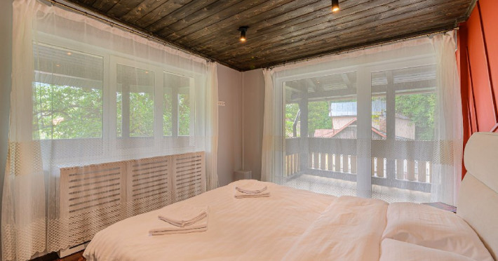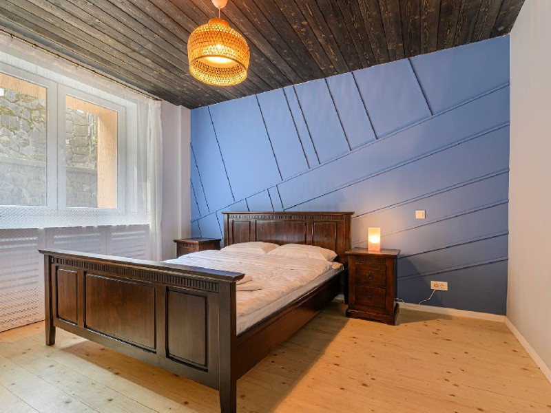 INFORMATII GENERALE Blend Mountain se afla la intrarea in statiunea Busteni, pe partea stanga pentru cei care vin dinspre Bucuresti si la iesirea din Busteni pe partea dreapta pentru cei care vin dinspre Brasov. Accesul in curte se face direct din DN 1.DESCRIERE UNITATE DE CAZARE Arhitectura si designul de munte in stil modern ofera oaspetilor posibilitatea sa beneficieze de un spatiu de cazare cochet, complet mobilat si utilat, pentru o vacanta la munte de neuitat. FACILITATI UNITATE Turistii au la dispozitie parcare, internet WI-Fi, o bucatarie comuna complet utilata, cu o zona de luat masa si 2 bai comune una la parter, iar a doua la etaj. Pentru un plus de relaxare ciubarul exterior este alegerea perfecta. DESCRIERE CAMERE Cu o suprafata de 15 m, camerele sunt mobilate cu paturi matrimoniale de 160 x 200 si dulap pentru haine. Fiecare camera a fost vopsita diferit tocmai pentru a oferi o experienta diferita. - Camera Blue - amplasata la parter; - Camera Green - amplasata la etaj dispune de balcon; - Camera Blue Marine - amplasata la etaj dispune de balcon; - Camera Gray - amplasata la etaj dispune de balcon; - Camera Red - amplasata la etaj dispune de balcon. Camerele NU dispun de baie proprie, exista 2 bai comune una la parter, iar a doua la etaj. LOCALIZARE Blend Mountain se afla la intrarea in statiunea Busteni, pe partea stanga pentru cei care vin dinspre Bucuresti si la iesirea din Busteni pe partea dreapta pentru cei care vin dinspre Brasov. Accesul in curte se face direct din DN 1. ATRACTII TURISTICE Muzeul Memorial Cezar Petrescu, Crucea de pe Caraiman, Castelul Cantacuzino, partia Kalinderu (1500 metri, dificultate crescuta), Cascada Urlatoarea, Pestera Ialomitei, varful Babele, Sfinxul din Bucegi, Biserica Domneasca - Nasterea Maicii Domnului, Manastirea Caraiman - Inaltarea Sfintei Cruci, Manastirea Ialomitei. POLITICI Nu sunt permise animalele de companie. SERVICII DE MASA Nu se asigura servicii de masa, insa turistii au la dispozitie o bucatarie comuna. FACILITATI COPII Copiii se pot caza in aceasta locatie.