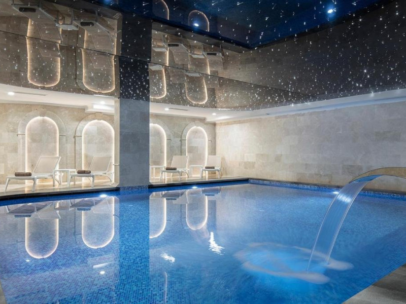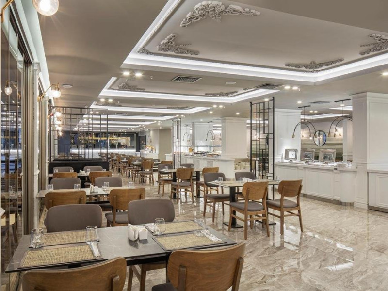 Facilitati hotel: Hotelul pune la dispozitia turistilor: receptie 24h, restaurant principal, lobby bar, pool bar, patiserie, spa si centru wellness cu 7 sali de tratamente, sauna, baie cu aburi, hamam, spectacole, petreceri si muzica, sporturi nautice pe plaja, jocuri, centru fitness, terasa, piscina exterioara, piscina interioara, piscina pentru copii, club pentru copii, tenis de masa, parcare, zona de plaja privata.