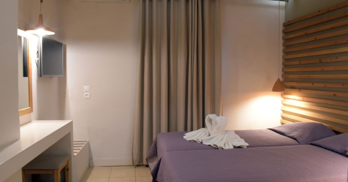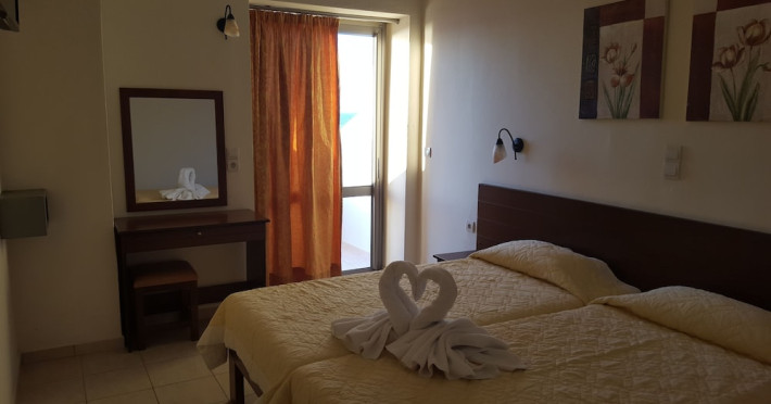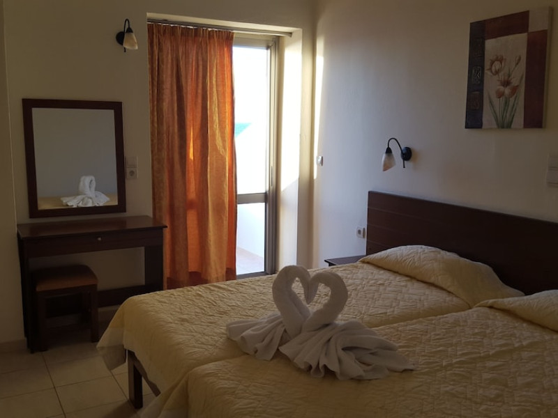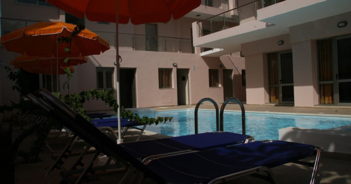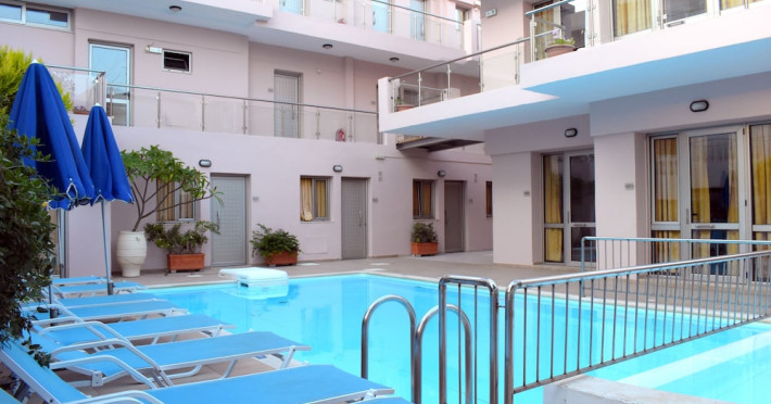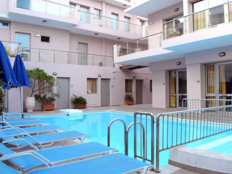 Facilities and services include wireless Internet access, 24 hour reception, swimming pool, children's pool and parking.Apartment feature wireless Internet access, air conditioning, T.V, safe, phone, fridge, balcony/terrace, hairdryer and bathroom.Please note that some of the above facilities may be closed due to weather / seasonal conditions.Cleaning: 6 time per week.Address: Ari Velouhioti 41, Rethymnon, Crete, Greece.