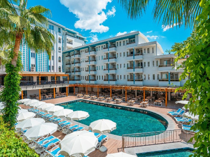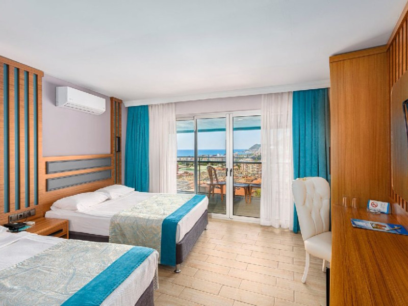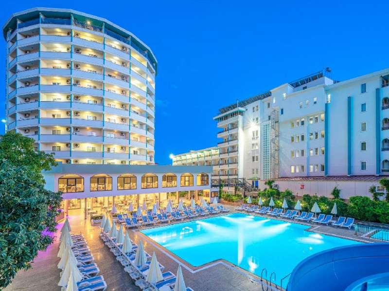Descriere: Aflat la doar 700 de metri de malul marii si 1,5 km de centrul orasului Alanya, hotelul ofera doua piscine exterioare cu tobogane si o plaja privata.