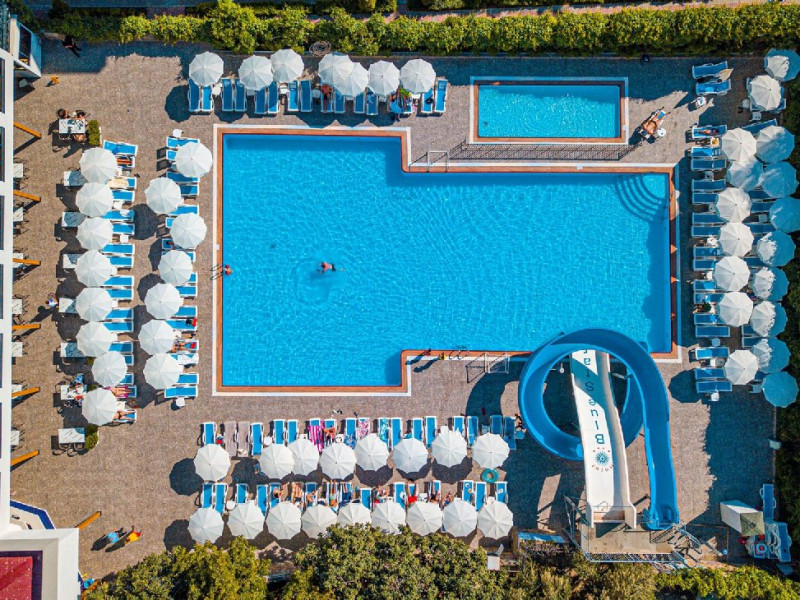 Facilitati hotel: Hotelul pune la dispozitia turistilor: restaurant cu o capacitate de 800 de locuri, snack bar, bar la piscina, spa si centru de wellness, baie turceasca, jacuzzi, masaj, centru de fitness, 2 piscine exterioare si una interioara, piscina pentru copii, loc de joaca pentru copii, animatie, tobogane, biliard, tenis de masa, zona de plaja privata, sezlonguri si umbrele.