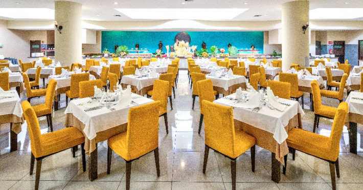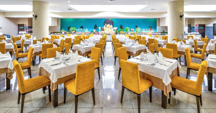 Hotel Complex hotelier mare, format din 8 cladiri Receptie si lobby Terase pentru plaja inconjurate de vegetatie 2 piscine (suprafata totala aprox. 2750 mp), dintre care una cu zona separata pentru copii, apa dulce, sezlonguri si umbrele la piscina Pentru copii: mini club, babysitting (contra cost) 7 restaurante, 7 baruri Alte facilitati: concierge, galerie comerciala cu boutique, chiosc de presa si magazin de suveniruri, spalatorie (contra cost), schimb valutar, inchiriere auto WiFi gratuit in intregul hotel Hotelul dispune de 979 camere de diferite tipuri, distribuite in mai multe cladiri. Toate sunt climatizate si dotate cu baie proprie (dus, uscator de par, cosmetice), televizor, seif gratuit, minibar reumplut zilnic (bere, apa, bauturi racoritoare), aparat pentru cafea si ceai, fier si masa de calcat, balcon sau terasa (mobilier exterior). Patut pentru copil pana la 2 ani gratuit (la confirmare). Transport in interiorul complexului cu masinute electrice.