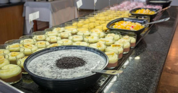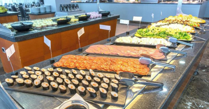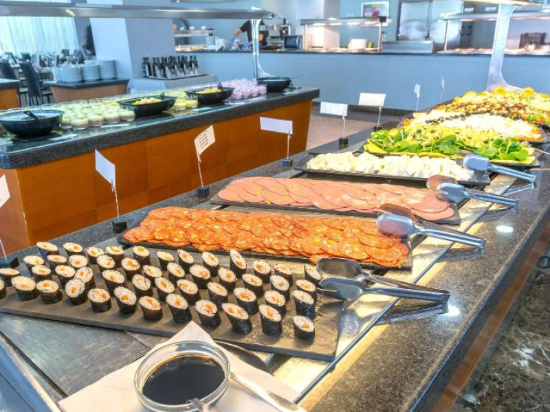 Micul dejun tip bufet oferă o varietate de preparate calde, fructe, cereale, deserturi și multe altele.