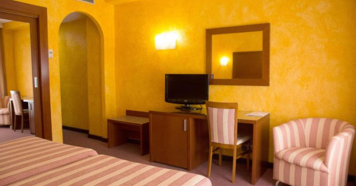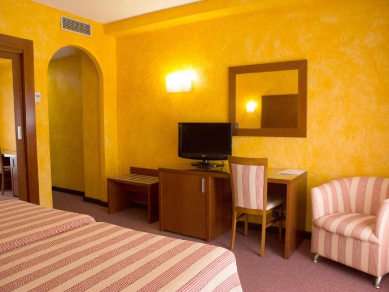 Camerele elegante ale hotelului includ un minibar și o baie din marmură cu uscător de păr. Unele camere oferă vedere la mare.