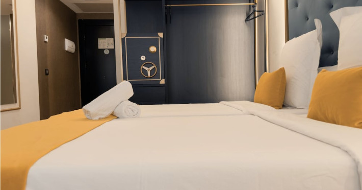 Facilities and services include 24 hour reception air conditioning, Wi-Fi Internet access, restaurant, bar, room service, meeting room, gym, solarium and TV lounge.Rooms feature air conditioning, Wi-Fi Internet access, minibar (extra charge), safe (extra charge), TV and kettle.Address: León y Castillo, 330, 35007, Las Palmas de Gran Canaria, Spain.Please note: Check/In Time : 15:00 Check/Out Time: 12:00