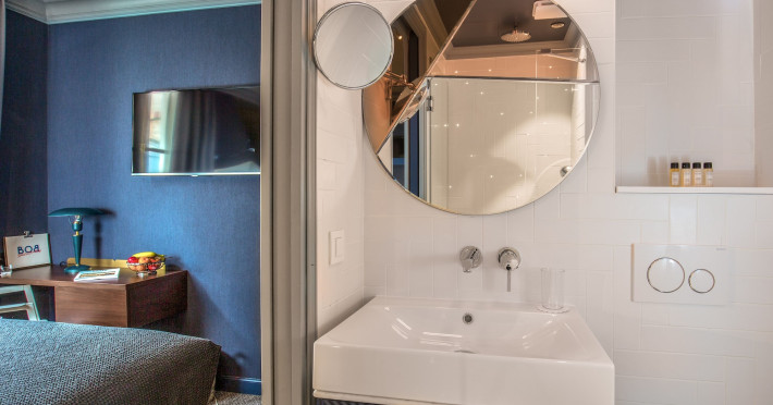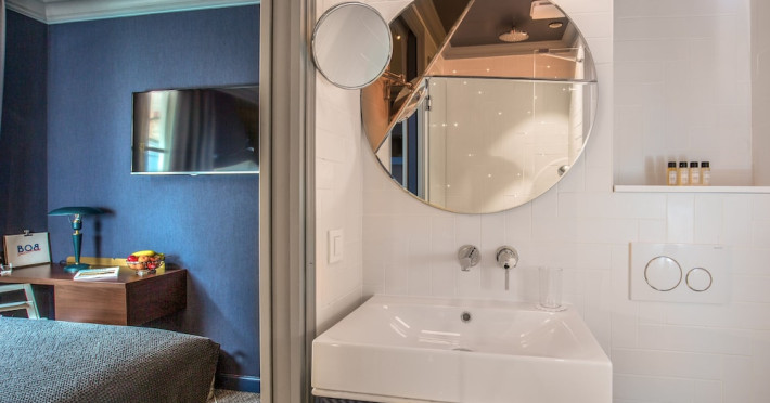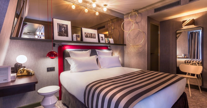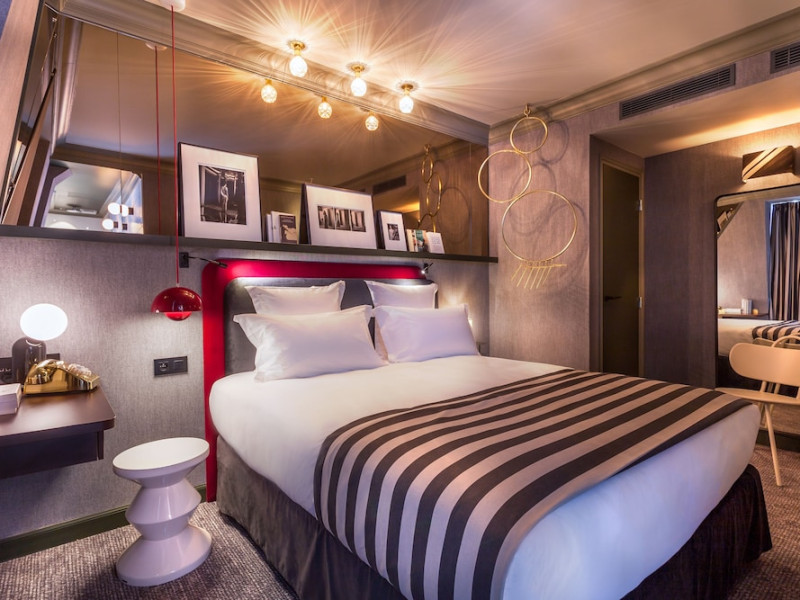 Located in Paris, Bob Hotel is near the Montparnasse Train Station and offers free WiFi throughout the property. The hotel features rooms equipped with a flat-screen TV, air conditioning, a safe, and a private bathroom with complimentary toiletries. A desk is provided in all rooms. Guests can enjoy a continental breakfast daily for a fee. The hotel has a bar/lounge, snack bar/deli, steam room, and a terrace. Additional amenities include a 24-hour front desk, concierge services, luggage storage, a business center, and dry cleaning/laundry services. For a surcharge, guests can use the roundtrip airport shuttle available 24 hours. The hotel also offers a connected area for individual or group work. Smoking is prohibited throughout the entire hotel. The Bob Hotel is a hotel.