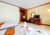 Located in the heart of Patong Beach on Phuket Island, near tropical jungle-covered hills, Bauman Ville Hotel is a stylish and affordable boutique hotel within a 40-minute drive of Phuket International Airport. It offers convenient access to international restaurants, bars, boutique shops, and Patong Beach. The hotel features classic, air-conditioned rooms equipped with a TV, tea and coffee facilities, and a bathroom with a shower and hairdryer. Complimentary wireless internet access is available. Guests can enjoy European dishes at the restaurant, drinks at the bar, or relax by the outdoor pool and lazy river. Amenities include a 24-hour front desk, multilingual staff, dry cleaning/laundry services, concierge services, and free self-parking. An airport shuttle is available for a surcharge. Nearby attractions include Nanai Road, Simon Cabaret, and Jungceylon Shopping Center. The Bossa Bauman Ville is a hotel.