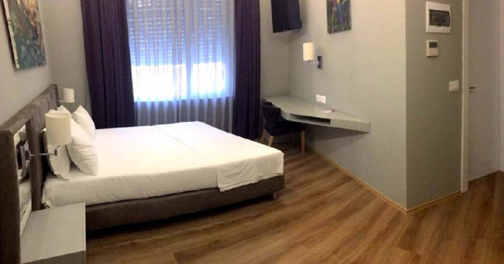 Localizare: Hotelul Bougainville Bay este situat in orasul Saranda din regiunea VlorAT su se afla la 34 km de Paleokastritsa si la 35 km de Glyfada. Facilitati hotel: Receptie, parcare cu plata intre 01.06 si 15.09 10 Euro/noapte. Restaurant, pentru micul dejun inclus si posibilitate de servire masa de pranz si cina (contracost), fitness, piscina. Facilitati camera: Toate camerele sunt dotate cu TV televizor cu ecran plat si baie privata, prevazuta cu uscator de par si articole de toaleta gratuite. Unele unitati au zona de relaxare. Camera dubla/twin Suprafata camerei 25 m Pagina web: https://www.bougainvillebay.com/home