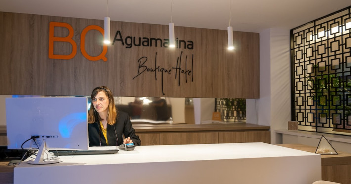 Located just across the promenade from the sandy beach in Can Pastilla, Palma de Mallorca, BQ Aguamarina Boutique Hotel offers comfortable accommodations and attentive service. Palma and the airport are easily accessible by bus, approximately 5 km away. The hotel features a restaurant specializing in local cuisine, a coffee shop/cafe, a lobby bar, and a poolside bar. Guests can enjoy an outdoor pool, hot tub, sauna, and spa services including massages. Complimentary wireless internet access is available. The hotel also offers a 24-hour front desk, concierge services, a computer station, and dry cleaning/laundry services. The 56 guestrooms feature private balconies, minibars, espresso makers, satellite programming, and private bathrooms with showers, designer toiletries, and hair dryers. The BQ Aguamarina Boutique Hotel is a hotel.