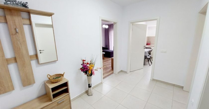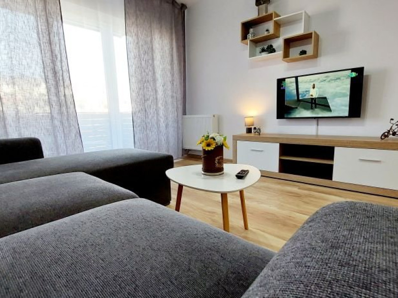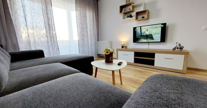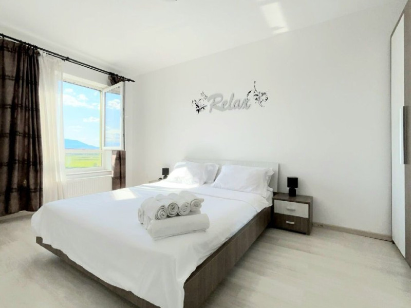 DOTARI SI SERVICII: Locatia ofera tot confortul necesar pentru un sejur placut si relaxant. Fiecare aparatment dispune de: - dormitor cu pat matrimonial; - bucatarie moderna, complet utilata; - living spatios cu canapea extensibila dubla; - terasa amenajata cu vedere spre munti; - parcare privata. Complexul rezidential beneficiaza de locuri de joaca pentru copii, spatii verzi generoase, zone de relaxare pentru momente de liniste, restaurante si diverse magazine. Statia de autobuz se afla la doar 2 minute de mers pe jos, oferind acces facil catre: - centrul istoric (aprox. 8 minute); - gara (aprox. 15 minute); - aeroport (aprox. 9 minute); -Poiana Brasov. Unitatile de cazare sunt usor accesibile, fiind ideale atat pentru familii cu copii, cat si pentru persoanele care utilizeaza scaune cu rotile. O rampa asigura accesul in hol, de unde se ajunge la liftul accesibil ce deserveste toate etajele. Situate la doar 2-4 minute unul de celalalt, apartamentele sunt perfecte pentru vacante in Brasov, inclusiv pentru grupuri sau delegatii.