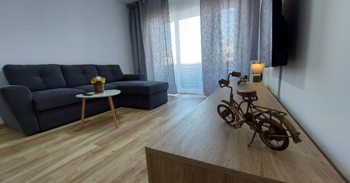 DOTARI CAMERE: Apartment Panoramic este situat in cartierul rezidential Avantgarden Bartolomeu din Brasov si este ideal pentru pana la 4 persoane. Apartamentul dispune de un dormitor cu pat matrimonial, living cu canapea extensibila dubla, baie cu cada si bucatarie complet utilata. Este dotat cu 2 televizoare cu ecran plat, masina de spalat rufe, sistem de incalzire si racitor de aer. Ofera balcon cu vedere la munte. Capacitate maxima: 5 persoane (4 adulti si 1 copil 0-6 ani)