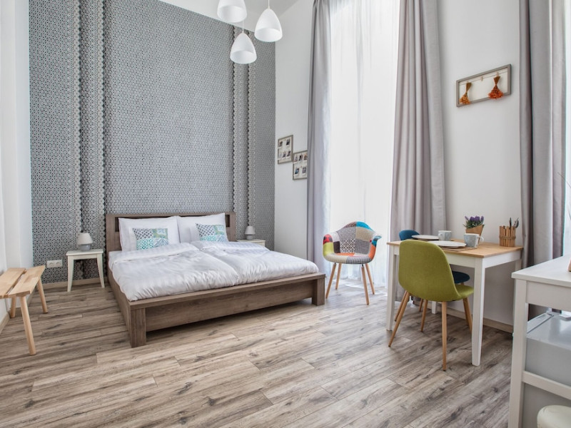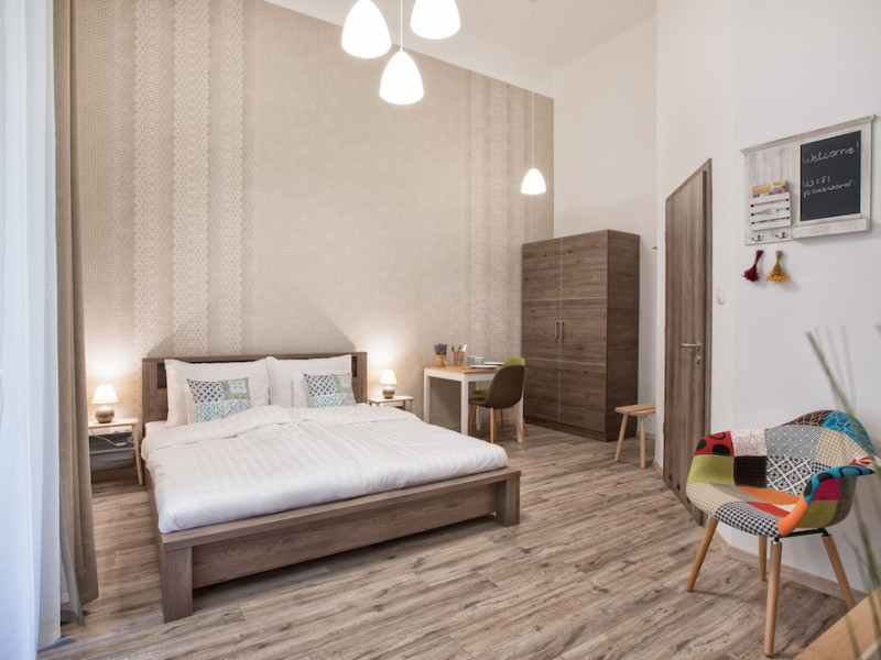 Hotel characteristics: ; 2 rooms Location: A perfect fit for a big group of travellers: apartment «Budapest Passage 1» is located in Budapest. This apartment is located in walking distance from the city center. You can take a walk and explore the neighbourhood area of the apartment. Places nearby: Kálvin tér, Hungarian National Museum and Great Market Hall At the apartment: Want to be always on-line? Wi-Fi is available. To book an excursion, consult the tour assistance desk of the apartment. There are other services available for the guests of the apartment. For example, a laundry and a concierge