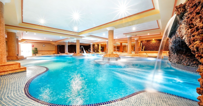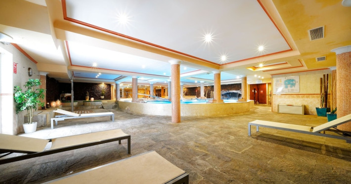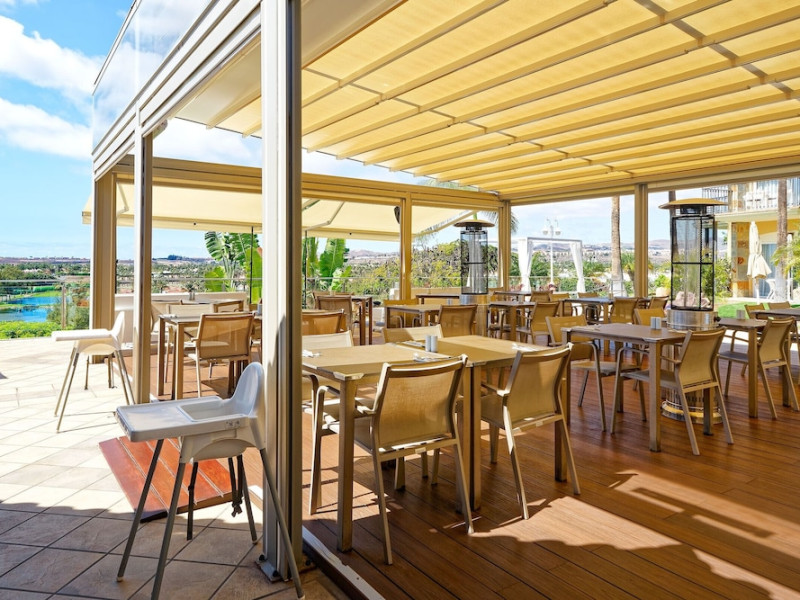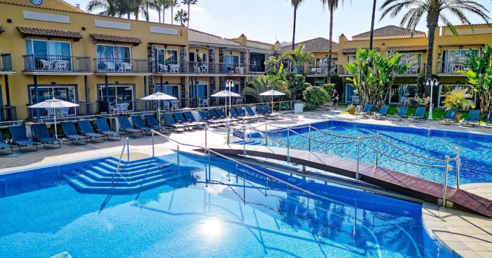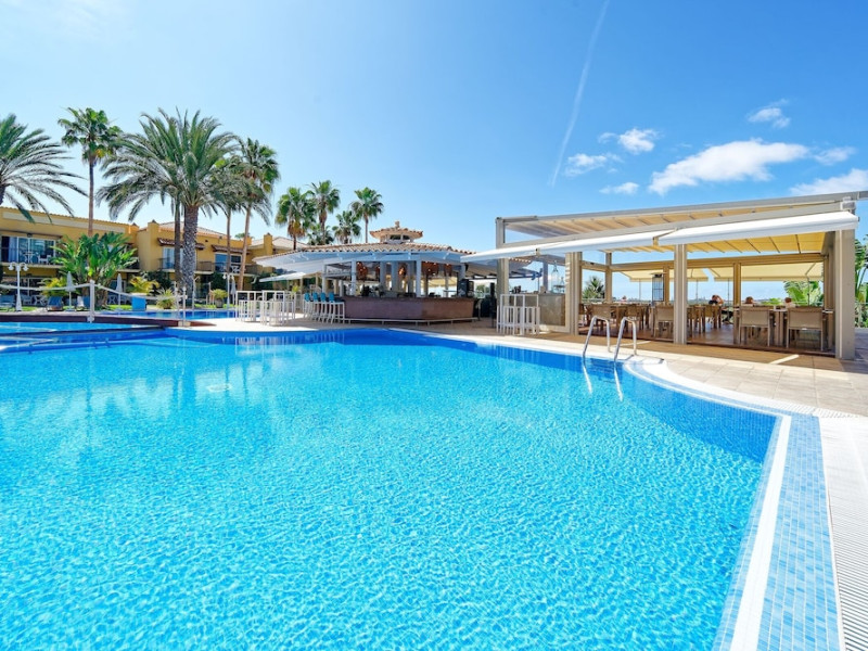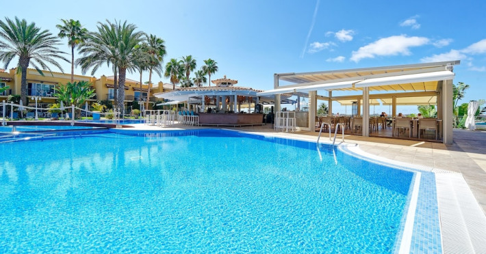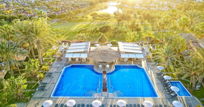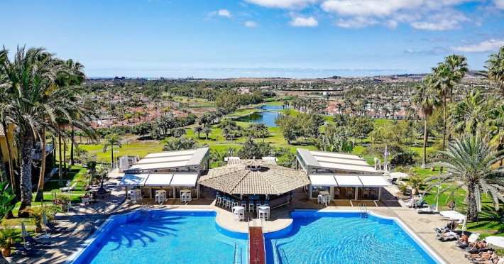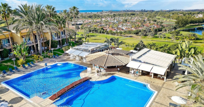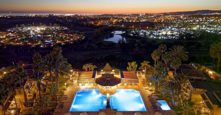 Facilities and services includes a 24 h reception, lifts, currency exchange, conference room, Wi-Fi in the lobby area (extra charge), restaurant and bar. The outside facilities include 2 pools (one heated in winter), sun deck and snack pool bar with views to the golf course. The hotel has a wellness area with a 500 m2 Talasso pool, Finnish sauna, Turkish bath, mud baths, Vichy shower, massages, and beauty & aesthetics saloon (the wellness area can be entered for an extra charge and if you are over the age of 18 years old). All en suite rooms are equipped with A/C, TV, radio, safe (with extra charge), mini bar, telephone, bathroom with hair dryer and bathrobe and terrace or balcony. Laundry services and room service available.The hotel has its own parking.** Please note that some of the above facilities may be closed due to weather / seasonal conditions.Please note: Unlimited access to the SPA for clients hosted.Bathrobe has to be rented at the reception with extra charge.Address: Avenida de Gran Canaria 80, 35100 Playa del Ingles, Gran Canaria, Spain.