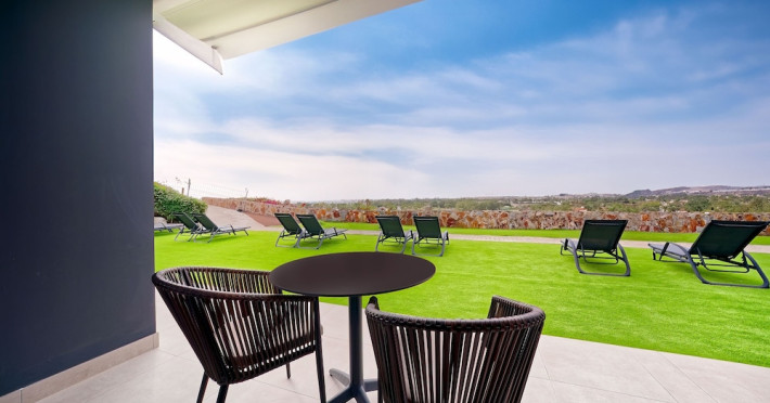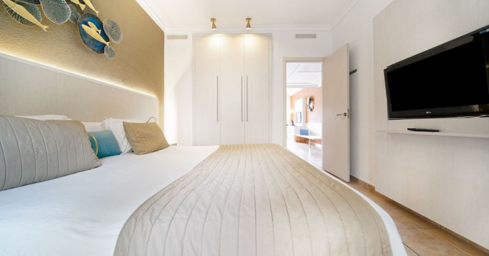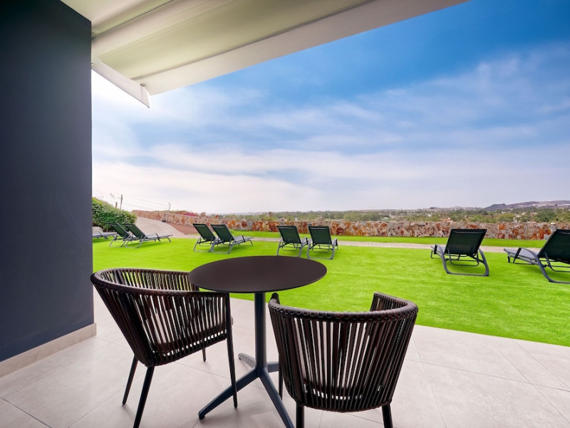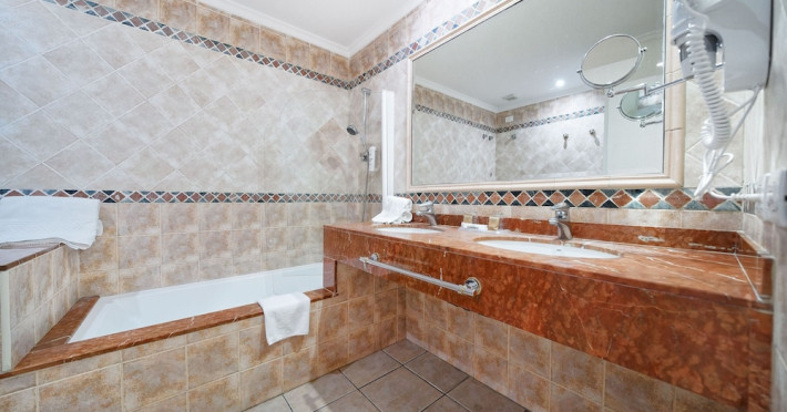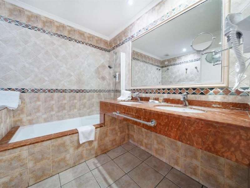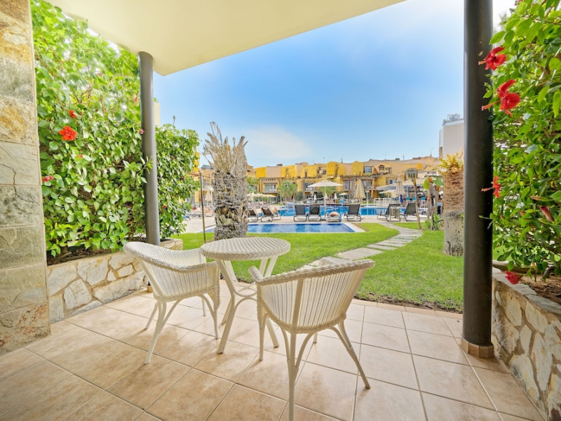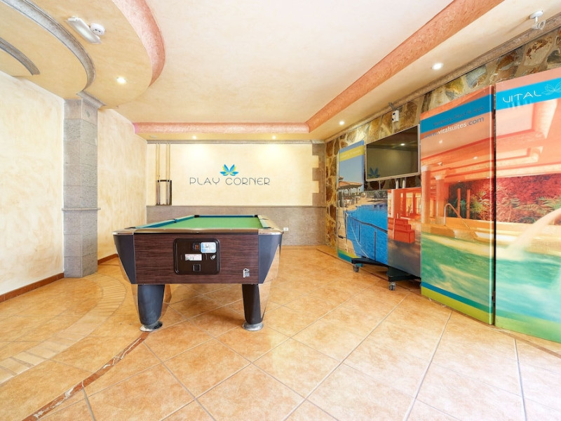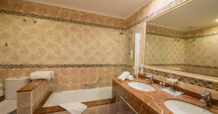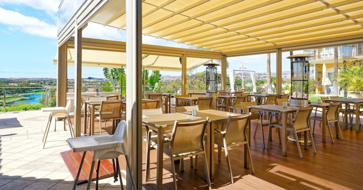 Facilities and services includes a 24 h reception, lifts, currency exchange, conference room, Wi-Fi in the lobby area (extra charge), restaurant and bar. The outside facilities include 2 pools (one heated in winter), sun deck and snack pool bar with views to the golf course. The hotel has a wellness area with a 500 m2 Talasso pool, Finnish sauna, Turkish bath, mud baths, Vichy shower, massages, and beauty & aesthetics saloon (the wellness area can be entered for an extra charge and if you are over the age of 18 years old). All en suite rooms are equipped with A/C, TV, radio, safe (with extra charge), mini bar, telephone, bathroom with hair dryer and bathrobe and terrace or balcony. Laundry services and room service available.The hotel has its own parking.** Please note that some of the above facilities may be closed due to weather / seasonal conditions.Please note: Unlimited access to the SPA for clients hosted.Bathrobe has to be rented at the reception with extra charge.Address: Avenida de Gran Canaria 80, 35100 Playa del Ingles, Gran Canaria, Spain.