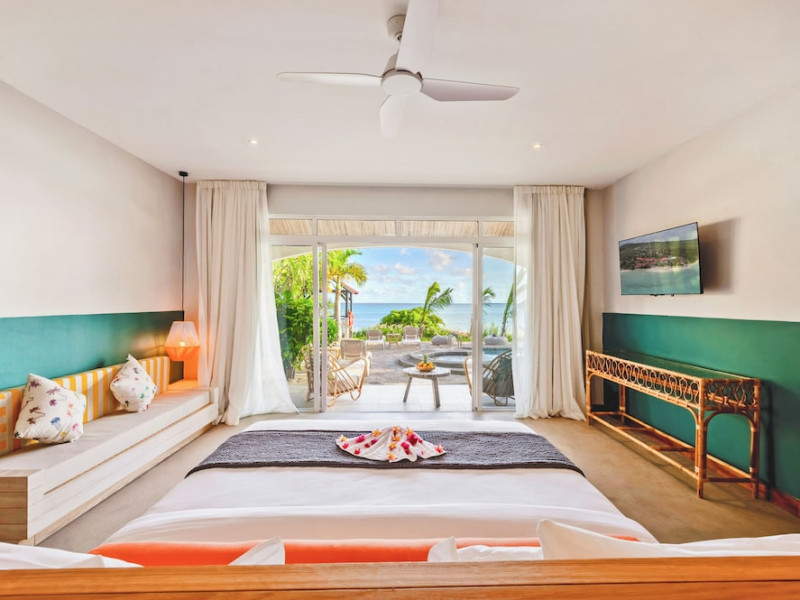 Facing the beachfront in Port South East, Rodrigues Island, C Rodrigues Mourouk is a 4-star hotel offering an outdoor swimming pool, garden, terrace, and private beach area. Guests can enjoy international cuisine at the restaurant, with vegetarian, halal, and vegan options available. The hotel features a bar, complimentary buffet breakfast, free WiFi, evening entertainment, and room service. Air-conditioned rooms include balconies, safety deposit boxes, and TVs. Kitchens are equipped with refrigerators, ovens, and stovetops. Some rooms also feature private pools and fireplaces. The area is popular for hiking and cycling, and car rental is available. Additional amenities include wedding services, express check-in, complimentary newspapers in the lobby, and dry cleaning/laundry services. A paid airport shuttle service to Sir Gaëtan Duval Airport is available. The C Mourouk - Rodrigues is a hotel.