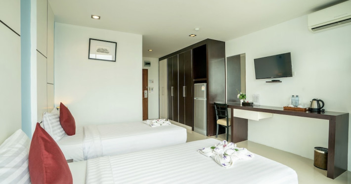 Located in Phuket Town, CA Hotel and Residence Phuket - SHA Extra Plus offers comfortable accommodation with city views. The hotel features an outdoor swimming pool, fitness center, restaurant serving Thai cuisine, and a shared lounge. Guests can enjoy complimentary WiFi, concierge services, and room service (during limited hours). A roundtrip airport shuttle is available 24 hours for a surcharge, and free self-parking is provided. The hotel offers 65 individually decorated guestrooms with private balconies, air conditioning, a seating area, a 32-inch LCD TV with cable programming, a refrigerator, a minibar, a safety deposit box, and a private bathroom with a shower, complimentary toiletries, and a hairdryer. Cooked-to-order breakfasts are available daily from 7:30 AM to 10:00 AM for a fee. The hotel provides a 24-hour front desk, a 24-hour business center, daily housekeeping, dry cleaning/laundry services, and 24-hour security.