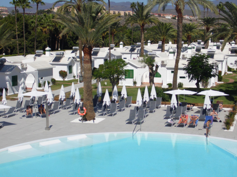 Canary Garden Club is a bungalow complex located in the Campo Internacional area of Maspalomas, in southern Gran Canaria, a 20-minute drive from the airport. The complex features an outdoor swimming pool, a buffet restaurant, a 24-hour front desk, and a cash machine on site. Each comfortable one-bedroom bungalow boasts a traditional Canarian style and includes a patio, garden, a bedroom, a bathroom, a living area with satellite TV, and free WiFi. A free shuttle service to Maspalomas beach is provided. Free public parking is available nearby. The CANARY GARDEN CLUB(Formerly Rio Maspalomas II) is a Tourist hotel. The nightlife/restaurants are located in the hotel.