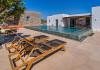The luxurious Villa Cape Ftelia, is located in the area of Ftelia, about 15 minutes, by car from the town of Mykonos and 15 minutes’ drive from the airport of the island.It is built amphitheatrically overlooking the sea and specifically on the north beach, in the bay of Panormos, with the amazingly crystal waters and long sandy beach. Due to the size of the beach and its boho hype, one has the unique advantage, to be isolated, if desired, which is almost impossible on other beaches of the island.Ftelia, is the most ideal beach for windsurfing, kitesurfing and swimming, but also an excellent spot for quality food, drink and concept beach activities at the beach bar Alemagou. Oozing Mykonian simplicity, this luxurious house offers 3 double bedrooms with 2 en suite bathrooms, and 1 extra bathroom, as well as, an independent, contemporary equipped kitchen, fully interactive with the living room. The kitchen area, is placed in the heart of the residence, so that it can refer to both the south and north sides of the courtyard and the pool area. This everyday space with airy openings, is a “window” to the sea view and the outdoor area.The garage connects with the main house with an internal staircase, while on the lower level, the laundryroom is located and soon the gym.Also available, is a 40 sq.m guest room, which can accommodate 2+1 people. It has one double - bedroom, one bathroom, fitted wardrobes and kitchen - bar.The guest room offers privacy and the possibility of autonomy from the rest of the group of 6 people who will be hosted in the main residence, while, at the same time provides all the premium facillities.