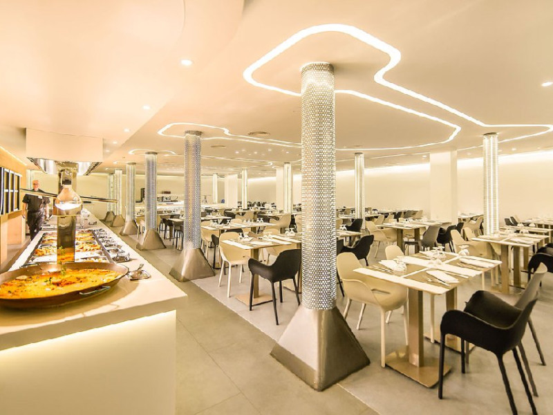 Facilitati hotel: Hotelul pune la dispozitia oaspetilor: restaurant bufet (pregteste si meniuri speciale pentru alergii alimentare, diabet, boala celiaca), 2 piscine exterioare cu terasa pentru plaja cu sezlonguri si umbrele (una este pe acoperis si este destinata exclusiv adultilor), piscina pentru copii, animatie adulti si copii, Wi-Fi gratuit, centru Welness cu sala fitness, sauna si jacuzzi, receptie 24h, inchirieri masini si biciclete, camera bagaje.