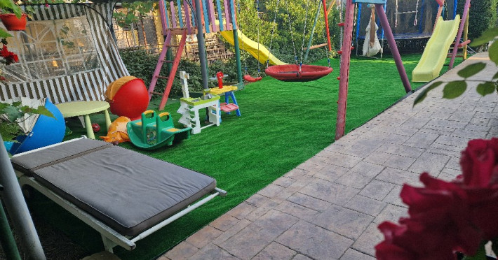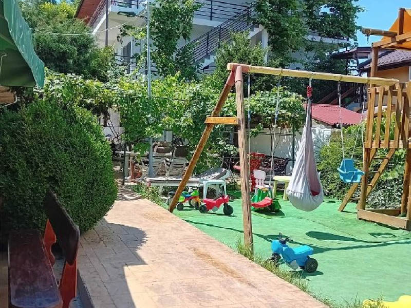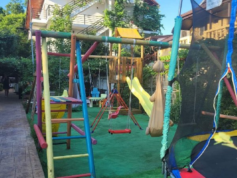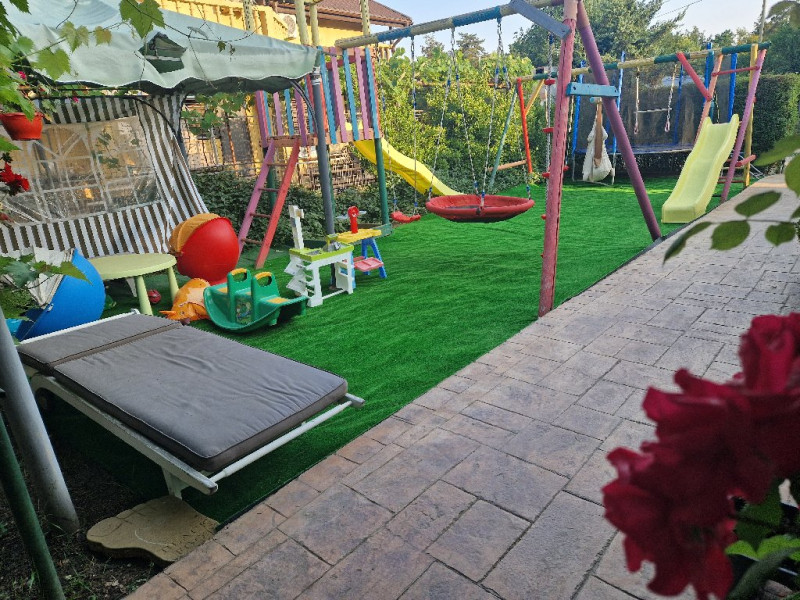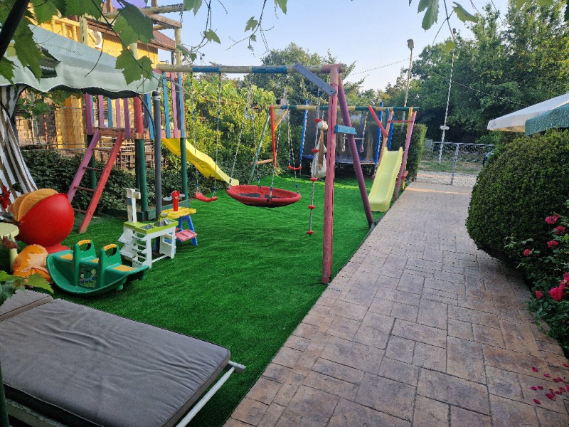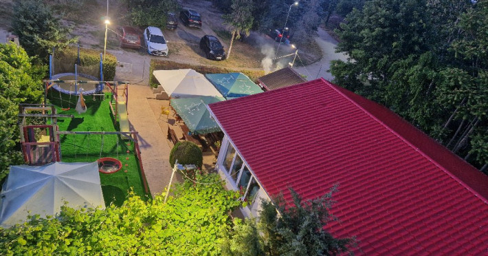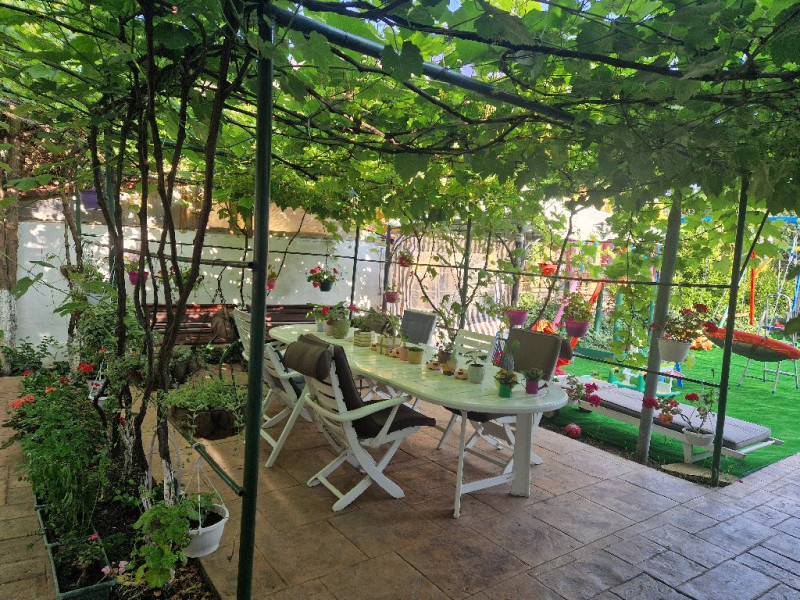 FACILITATI UNITATE Dotari generale: Sala de mese in interior, foisor cu bucatarie de vara complet echipata si utilata, curte si terase cu mese, bancute si scaune pentru serile prelungite, unde va puteti uita la TV sau puteti asculta muzica in timp ce pot supraveghea copiii jucandu-se la locurile de joaca din interior si exterior. Puteti incalzi micul dejun si cina la cuptoarele cu microunde sau va puteti prepara felurile de mancare preferate la aragazele si cuptoarele situate in foisor. La dispozitie aveti vesela, tacamuri, ustensile si electrocasnice, frigidere si in foisor pentru depozitarea propriilor alimente. Sunt disponibile scaune pentru copii. Gratarele sunt situate in curte. In fata casei dispunem de locuri de parcare. Se ofera serviciu Internet Wireless gratuit pe toata suprafata pensiunii, cu trafic nelimitat. Prosoapele si lenjeria de pat se schimba la 3 zile, sau la cererea clientului. Va puteti folosi gratuit de uscator de par, masa si fier de calcat, remi, sah, table, remy, carti de joc etc.