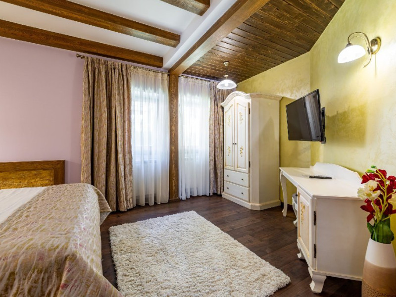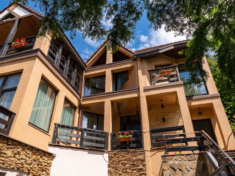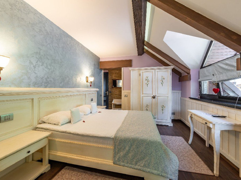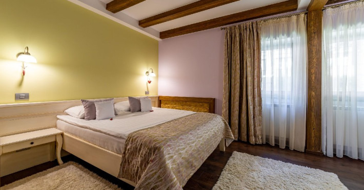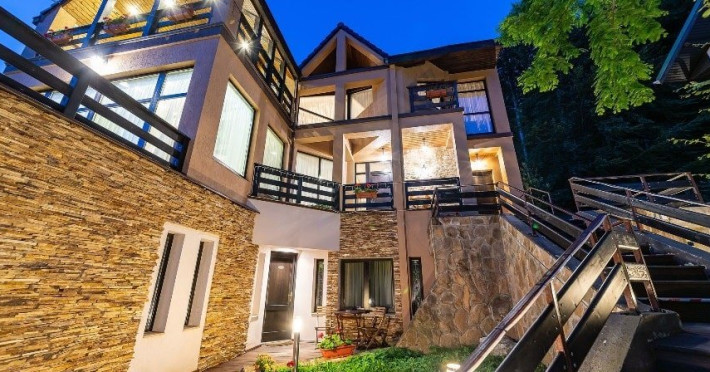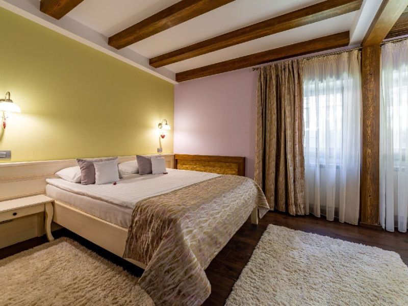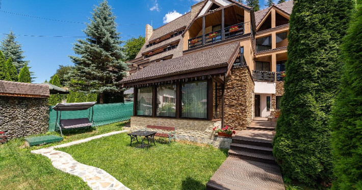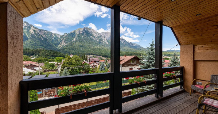 INFORMATII GENERALE Casa Freya 2 face parte din Complex Freya alaturi de Casa Freya si este situata in cartierul Zamora al statiunii Busteni, cu vedere catre intregul lant muntos Bucegi si in mod special a Crucii de pe Varful Caraiman. DESCRIERE UNITATE DE CAZARE Complexul Casa Freya este locul ideal pentru o clientela diversa: pentru cei pasionati de munte si drumetii, sporturi de iarna, pentru persoanele care doresc sa se relaxeze si sa scape de stresul orasului sau pentru cei care doresc sa impleteasca utilul cu placutul. FACILITATI UNITATE Locatia dispune de parcare si sala de mic dejun la Casa Freya, internet wireless. DESCRIERE CAMERE Camera Dubla Superioara PAPU este situata la parter, nu are balcon si este compusa din pat matrimonial si canapea extensibila. Suprafata totatala a camerei este de aproximativ 43 mp. Accesul este privat si se face direct din curte. Camera Dubla Superioara MAIA este situata tot la parter, nu balcon si este compusa din pat matrimonial si canapea extensibila. Suprafata totatala a camerei este de aproximativ 40 mp, iar holul acesteia ofera o vedere minunata catre Varful Caraiman. Accesul este privat si se face direct din curte. Camera Dubla cu vedere munte FREYA este situata la etajul 2 si are o suprafata de 32 mp si 12 mp terasa exterioara, este cea mai cautata structura de catre indragostiti si nu numai. Camera Dubla Superioara FREY se afla tot la etajul 2 si are o suprafata de 22 mp. Ofera o vedere linistitoare catre padure. Camera Dubla Superioara ALBA este pozitionata in partea din spate a cladirii, la parter, compusa din pat matrimonial si canapea extensibila. Suprafata totala a camerei este de aproximativ 43 mp. Accesul este privat si se face urcand la etajul 1 si ocolind cladirea prin dreapta. Apartamentul SOFIA se afla la etajul 1 si este compus din dormitor cu pat matrimonial si living generos cu canapea extensibila. Suprafata totatala a apartamentului este de aproximativ 82 mp, iar din living se poate iesi pe propria terasa exterioara ce ofera vedere spre Muntii Bucegi. Accesul este privat si se face direct din curte. Toate camerele sunt dotate cu Wi-Fi, baie cu dus, telefon, TV. LOCALIZARE Casa Freya 2 se afla in cartierul Zamora din statiunea Busteni, la aproximativ 400 m de Castelul Cantacuzino. In apropiere se afla si Telecabina Busteni care ajunge in varful Muntilor Bucegi, partia si parcul de distractii Kalinderu. ATRACTII TURISTICE Castelul Cantacuzino, Parcul de Distractii si Partia Kalinderu, Parcul Schiel, Manastirea Caraiman, Platoul Bucegi (Babele, Sfinxul). POLITICI Nu se accepta animale de companie. SERVICII DE MASA Micul dejun se asigura la Casa Freya, aflat la 20 m de Casa Freya 2. FACILITATI COPII Nu se adauga paturi suplimentare.