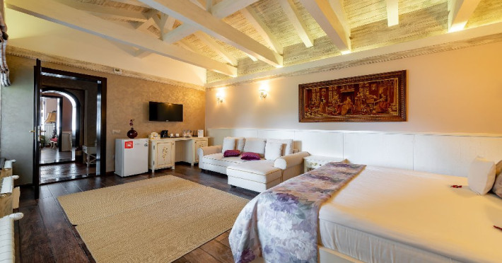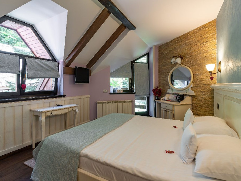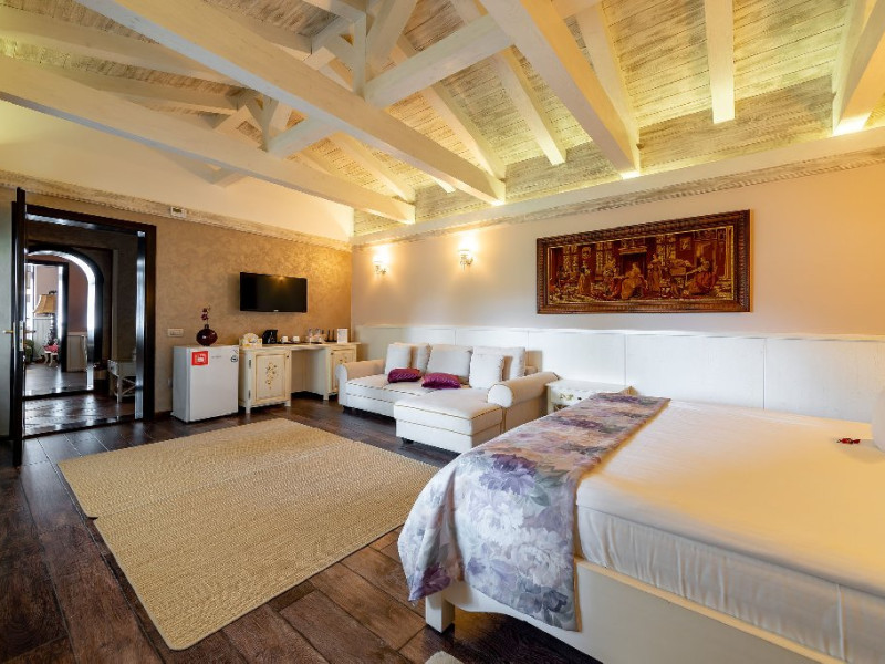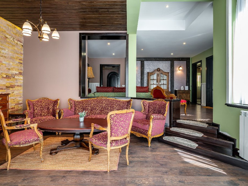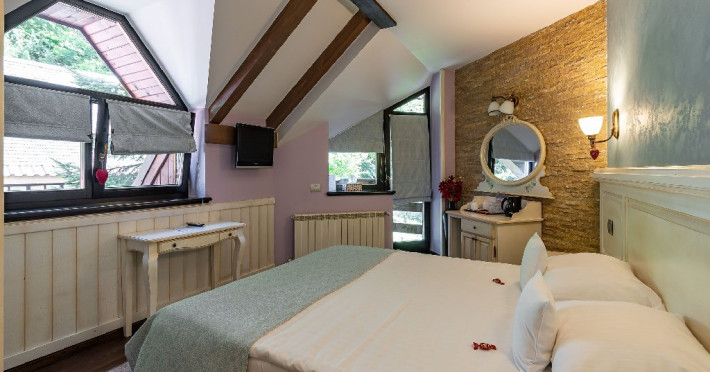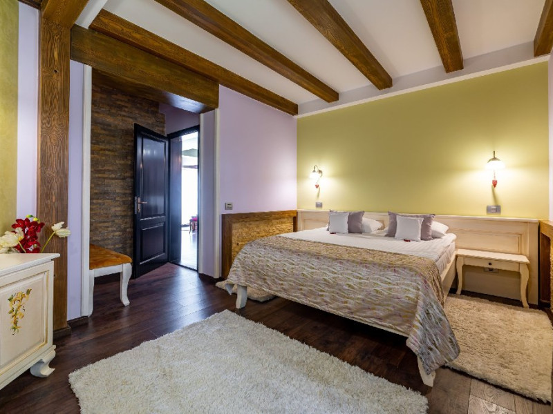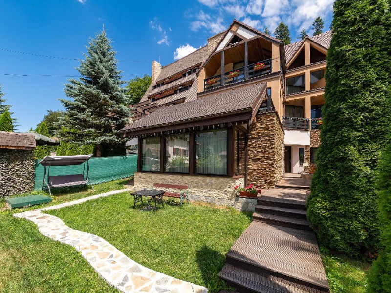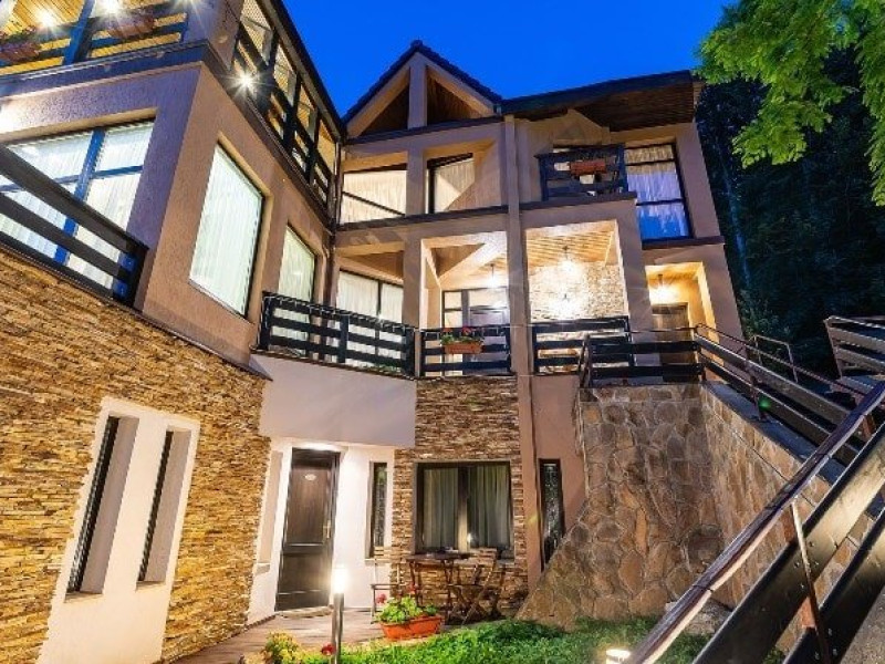 INFORMATII GENERALE Casa Freya 2 face parte din Complex Freya alaturi de Casa Freya si este situata in cartierul Zamora al statiunii Busteni, cu vedere catre intregul lant muntos Bucegi si in mod special a Crucii de pe Varful Caraiman. DESCRIERE UNITATE DE CAZARE Complexul Casa Freya este locul ideal pentru o clientela diversa: pentru cei pasionati de munte si drumetii, sporturi de iarna, pentru persoanele care doresc sa se relaxeze si sa scape de stresul orasului sau pentru cei care doresc sa impleteasca utilul cu placutul. FACILITATI UNITATE Locatia dispune de parcare si sala de mic dejun la Casa Freya, internet wireless. DESCRIERE CAMERE Camera Dubla Superioara PAPU este situata la parter, nu are balcon si este compusa din pat matrimonial si canapea extensibila. Suprafata totatala a camerei este de aproximativ 43 mp. Accesul este privat si se face direct din curte. Camera Dubla Superioara MAIA este situata tot la parter, nu balcon si este compusa din pat matrimonial si canapea extensibila. Suprafata totatala a camerei este de aproximativ 40 mp, iar holul acesteia ofera o vedere minunata catre Varful Caraiman. Accesul este privat si se face direct din curte. Camera Dubla cu vedere munte FREYA este situata la etajul 2 si are o suprafata de 32 mp si 12 mp terasa exterioara, este cea mai cautata structura de catre indragostiti si nu numai. Camera Dubla Superioara FREY se afla tot la etajul 2 si are o suprafata de 22 mp. Ofera o vedere linistitoare catre padure. Camera Dubla Superioara ALBA este pozitionata in partea din spate a cladirii, la parter, compusa din pat matrimonial si canapea extensibila. Suprafata totala a camerei este de aproximativ 43 mp. Accesul este privat si se face urcand la etajul 1 si ocolind cladirea prin dreapta. Apartamentul SOFIA se afla la etajul 1 si este compus din dormitor cu pat matrimonial si living generos cu canapea extensibila. Suprafata totatala a apartamentului este de aproximativ 82 mp, iar din living se poate iesi pe propria terasa exterioara ce ofera vedere spre Muntii Bucegi. Accesul este privat si se face direct din curte. Toate camerele sunt dotate cu Wi-Fi, baie cu dus, telefon, TV. LOCALIZARE Casa Freya 2 se afla in cartierul Zamora din statiunea Busteni, la aproximativ 400 m de Castelul Cantacuzino. In apropiere se afla si Telecabina Busteni care ajunge in varful Muntilor Bucegi, partia si parcul de distractii Kalinderu. ATRACTII TURISTICE Castelul Cantacuzino, Parcul de Distractii si Partia Kalinderu, Parcul Schiel, Manastirea Caraiman, Platoul Bucegi (Babele, Sfinxul). POLITICI Nu se accepta animale de companie. SERVICII DE MASA Micul dejun se asigura la Casa Freya, aflat la 20 m de Casa Freya 2. FACILITATI COPII Nu se adauga paturi suplimentare.
