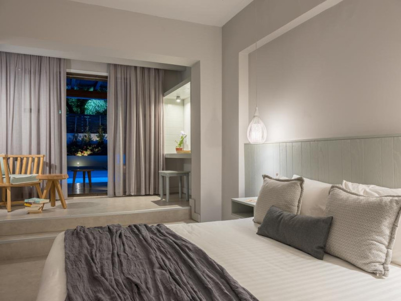 Facilitati hotel: receptie 24h, internet, inchirieri biciclete, masini, excursii (contra cost), servicii la cerere si contra cost (doctor, coafeza, posta), mini-biblioteca in lobby, transfer privat aeroport (contra cost), spa Gazebo (contra cost), piscina, gastronomie organica locala, activitati recreative (arta & mestesuguri, seara greceasca, yoga, pilates, aqua gym, gradinarit, muzica live, etc)