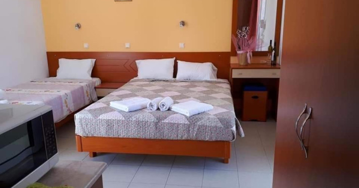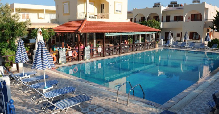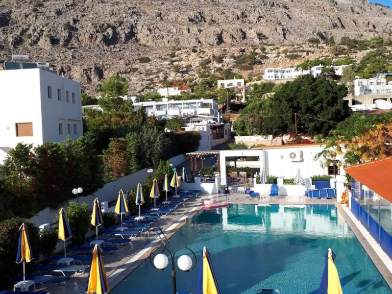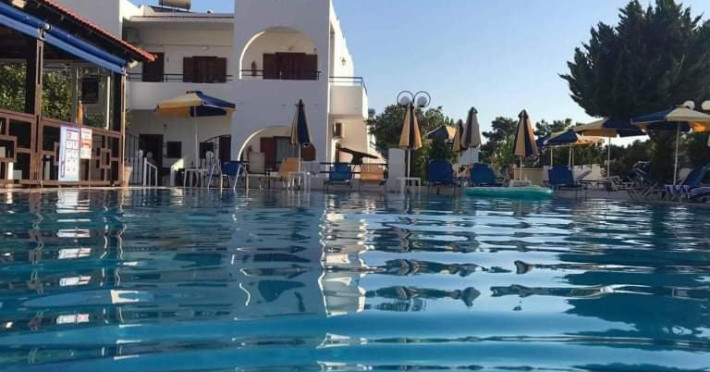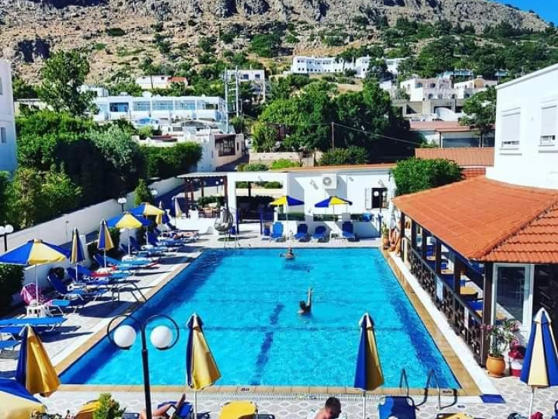 The Chrysanthi Studios & Apartments Pefkos comprises of three two storey buildings with 40 apartments and studios and located close to the restaurants and supermarkets, as well as being only 300m from the beaches of St Thomas and Lee.Facilities of the hotel include 24 hour reception, restaurant, bar, luggage room, Wi-Fi in public areas, safety deposit box (local charge) at the reception, swimming pool, garden, children's playground and parking.Room facilities include bathroom, TV, fridge, kitchenette, air-conditioning (Local charge), safe (extra charge), Wi-Fi, and balcony.Address: Pefkos, PC 85107, Rhodes, Greece.