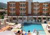 Localizare: Statiunea Marmaris este recunoscuta drept Ibiza turceasca . Cele mai multe hoteluri sunt de 3* nepretentioase, dar foarte curate, cu demipensiune. In ultimii ani, au aparut mai multe hoteluri exclusiviste, cu plaje private. Orasul in sine cuprinde multa verdeata, cu palmieri si flori, dispus de-a lungul tarmului golfului inchis. Peisajul este de o frumusete aparte, iar marea, rece din cauza raurilor care se varsa in ea, este foarte limpede. In centrul orasului se pot vedea si astazi ruinele fortaretei de la care Marmaris si-a preluat numele. Turistii care prefera un sejur mai linistit, in familie, ar putea opta pentru o suburbie draguta a Marmarisului: Icmeler, un adevarat sat de vacanta, cu casute mici, gradini care coboara pana pe plaja de nisip. Hotelul Marti Resort Deluxe este situat la 500 metri de orasul Icmeler si la 8 km de Marmaris. Dotari camere: Camerele sunt dotate cu aer conditionat centralizat, telefon, uscator de par, sistem de incalzire, minibar, pardoseala din parchet si mocheta, balcon, TV cu cablu, baie cu dus si cada, seif. Facilitati hotel: 2 piscine exterioare, piscina pentru copii, 4 lifturi, restaurant exterior, restaurant interior, restaurant cu specific (Italian), 4 baruri ((Kazanova Bar, La Grotta Bar, Pool Bar, Oryental Bar, South Beach Bar), snack bar (la piscina), aer conditionat in spatii publice, Tv cu cablu in receptie, echipa de animatie, room service (disponibil 24 de ore), 4 Sali de conferinta si babysitting, spalatorie, coafor care sunt cu plata. Sala de jocuri (carti, sah, etc), loc de joaca pentru copii, mini club (intre 4-12 ani), mini disco, activitati specifice pentru copii, junior club (intre 13-16 ani, se pot da lectii de dans), sala de fitness, sauna, baie turceasca, tenis de masa, dart, baschet, volei, tenis de camp, echipamentele sportive sunt gratuite. Cu plata sunt: masaj, centru de infrumusetare, billiard, internet cafe, jocuri pe calculator, jocuri cu lumini, sporturi nautice (doar pe plaja), parcare. Animalele de companie sunt acceptate (se pot percepe taxe). Plaja: Plaja este privata, cu nisip si pietricele, ponton, are 115 metri lungime si 33 metri latime, cabine de dus si de schimb; sezlongurile, umbrelele si prosoapele sunt gratis Pagina web: http://www.munamarbeachresort.com/