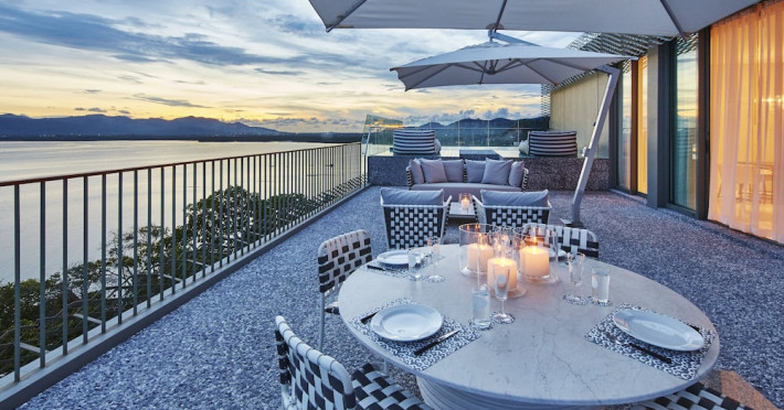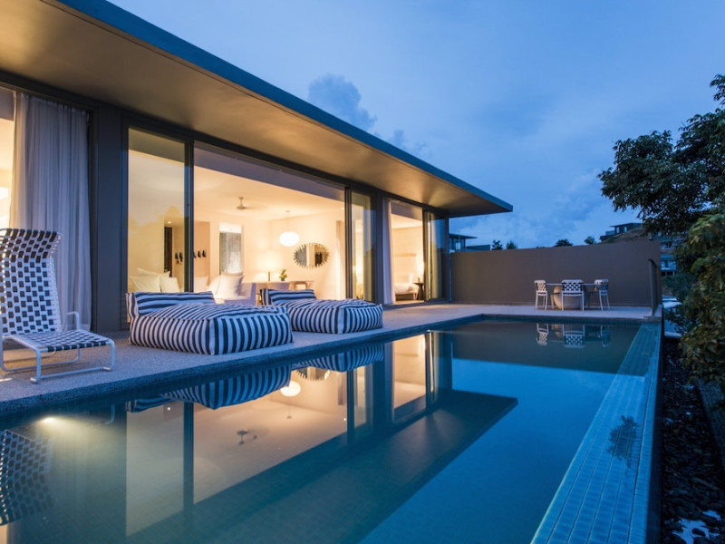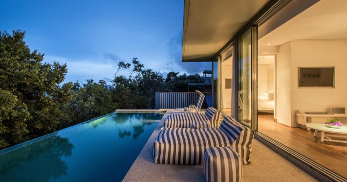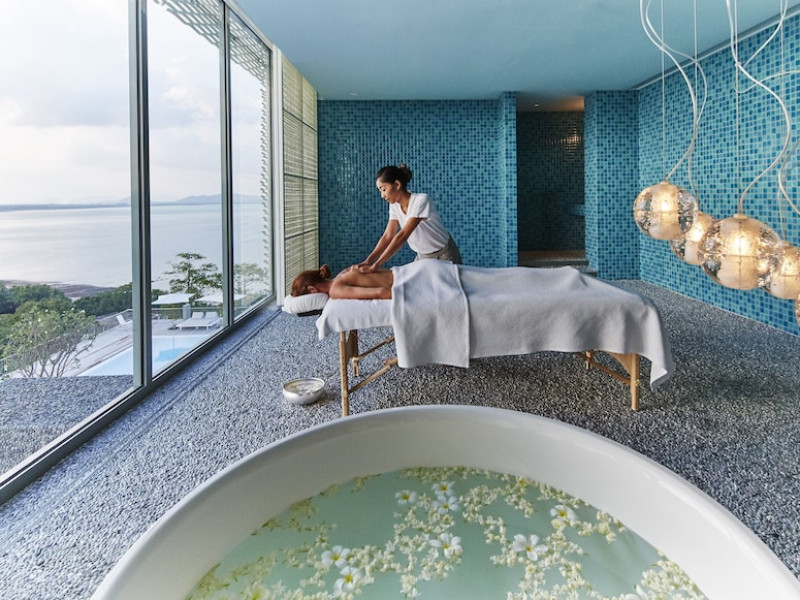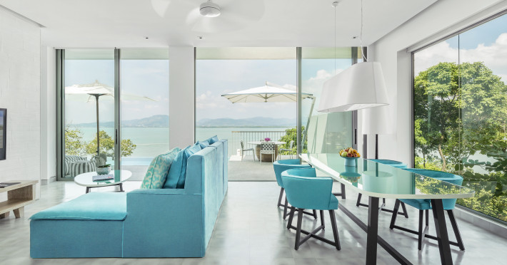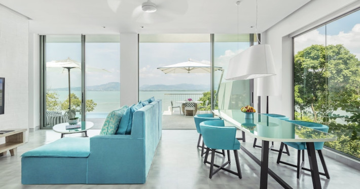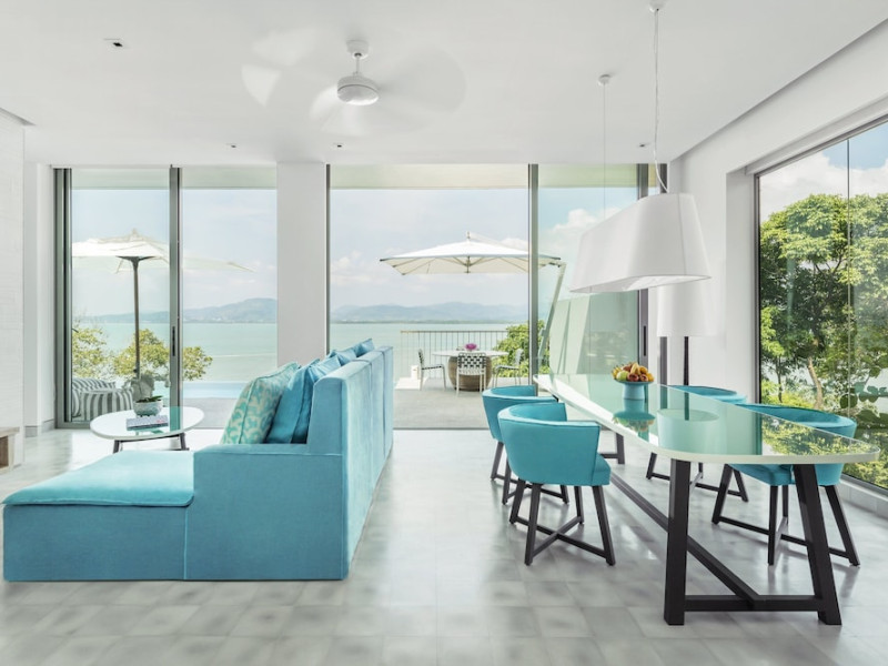 COMO Point Yamu, Phuket, located on Cape Yamu overlooking the Andaman Sea and Phang Nga Bay, is a luxury resort designed by Paola Navone. It offers rooms, suites, and villas with sea or mountain views. Guests can enjoy complimentary Wi-Fi, an outdoor pool, a fitness center, and a full-service spa with massages, body treatments, and facials. Dining options include two restaurants serving Thai, Italian, and healthy cuisines, as well as a poolside bar and 24-hour room service. A complimentary buffet breakfast is served daily. The resort also features a COMO Shambhala wellness retreat with holistic treatments, yoga lessons, steam rooms, and a spa pool. Additional amenities include a 24-hour front desk, concierge service, dry cleaning/laundry services, meeting rooms, and free valet parking. An airport shuttle is available for a surcharge. The resort is smoke-free, with designated smoking areas. Nearby attractions can be accessed via taxi or car hire services. The Como Point Yamu Phuket is a Beach Resort, Honeymoon, Leisure, Resort, Tourist, Villa Resort hotel. The nightlife/restaurants are easily accessible by taxi or bus from the hotel.