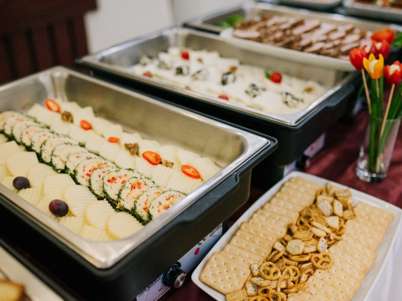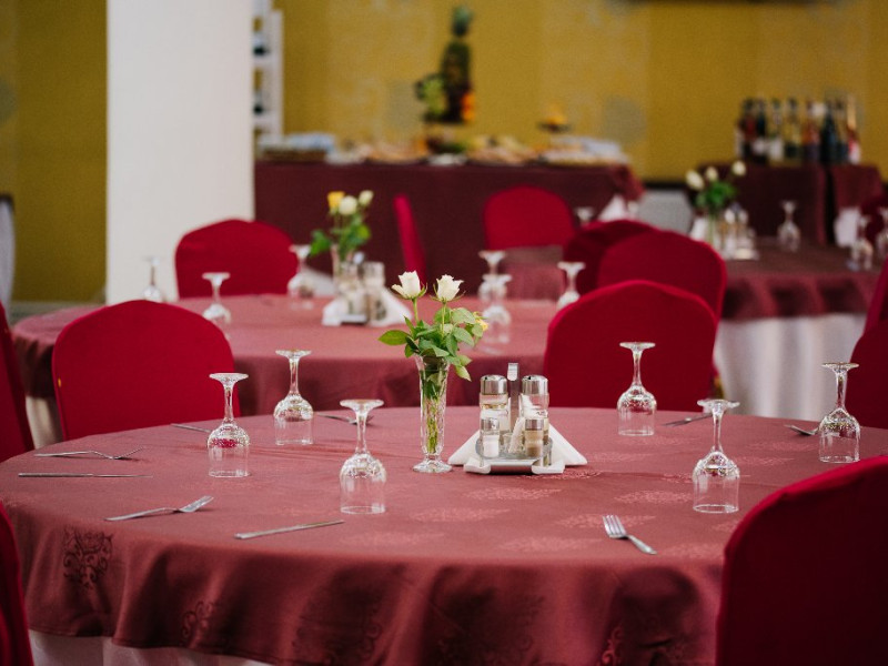 Restaurantul care deserveste locatia este situat la parterul hotelului Covasna fiind dotat corespunzator categoriei de 3 stele, cu capacitate de 320 locuri, in doua saloane si un numar de 60 locuri pe terasa exterioara. Restaurantul ofera atat preparate din bucataria traditionala si internationala cat si preparate individualizate pe regim dietetic, regim cardiovascular si vegetarian.