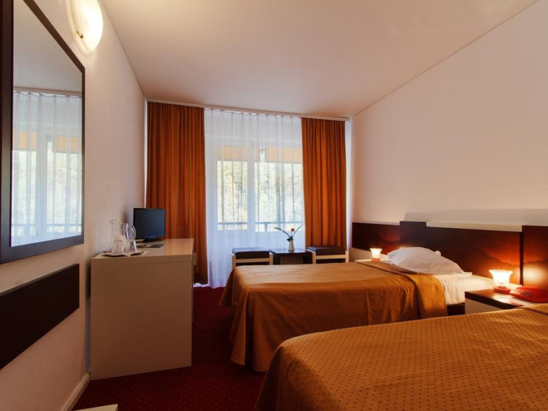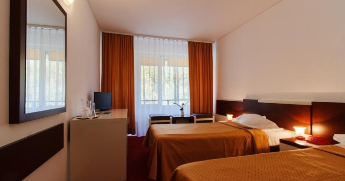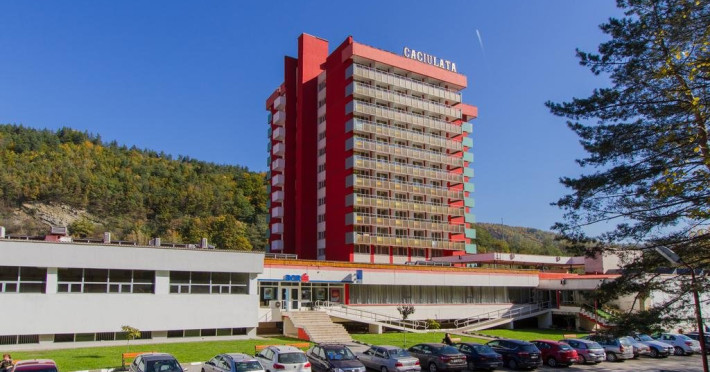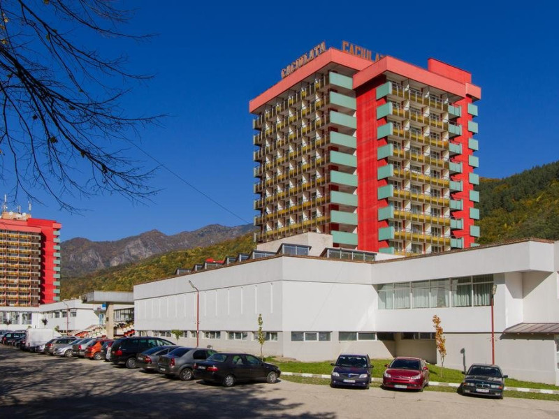 Hotelul Caciulatal este situat in apropiere de centrul statiunii. Facilitati Hotel: Hotel este recent renovat si dispune de 50 camere duble, 22 camere single, parcare proprie, bar. Dotari Camere: Camerele au TV, baie cu dus, ventilator. Alte informatii : In functie de numarul de turisti, serviciile de masa se pot servi sub forma de bufet suedez sau variante de meniu fix. Turistii trebuie sa aiba dovada de asigurat (adeverinta de la locul de munca sau cupon de pensie),trimitere de la medicul de familie sau specialist pentru a beneficia de tarifele speciale de tratament. Turistii trebuie sa fie contibuabili la CNPAS. (casa nationala) nu la armata sau alte case de asigurari. Unde sunt precizari ca tratamentul se plateste in toate zilele (Luni -Duminica), in cazul in care nu se face tratament la baza de tartament sambata si duminica aceste proceduri se repartizeaza in celelalte zile