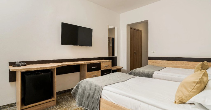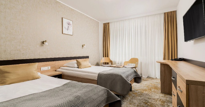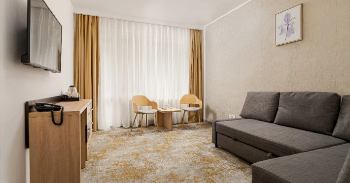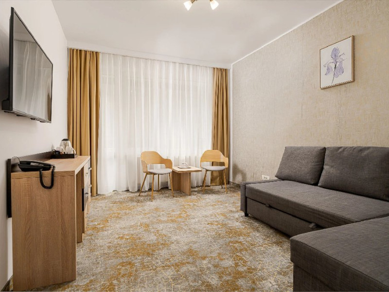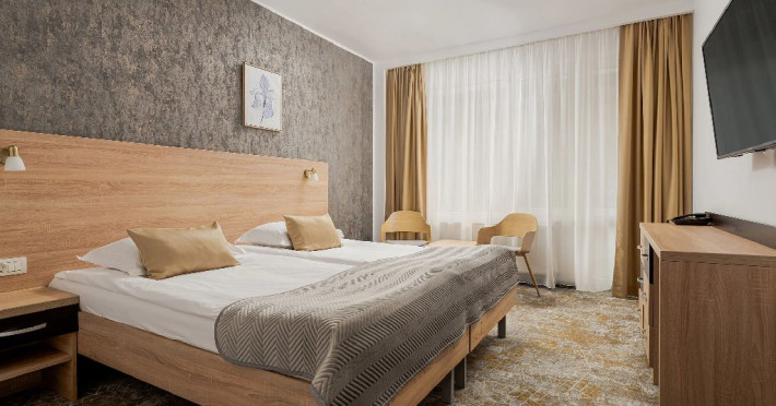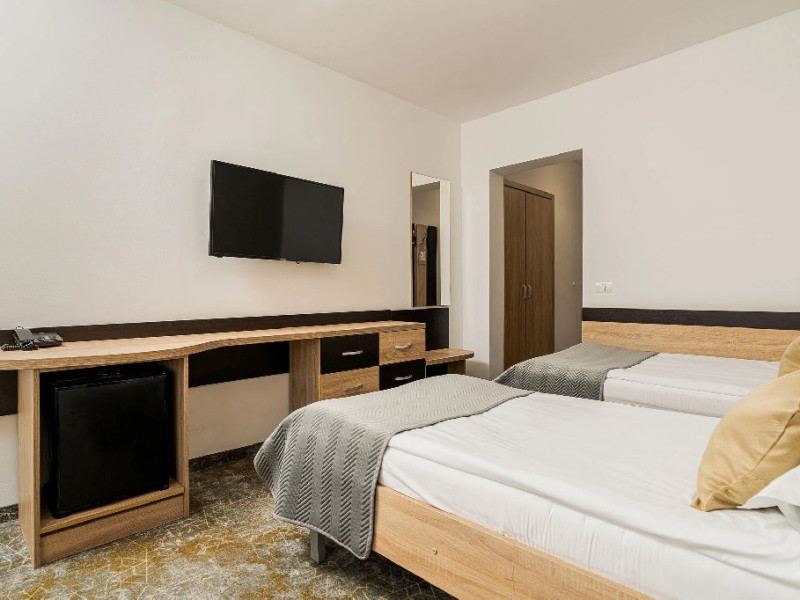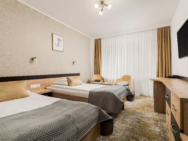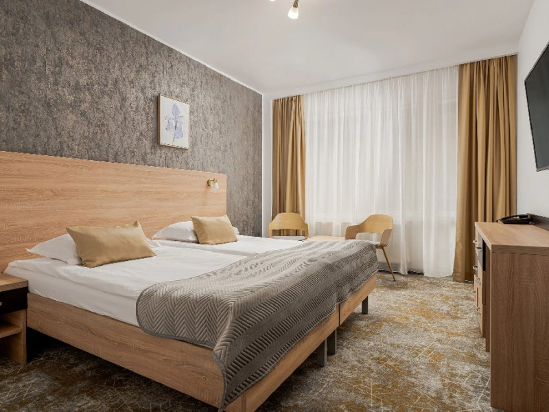 Tratament: baza de tratament comuna cu serviciu de masaj unde se pot trata afectiuni ale tubului digestiv, hepato-biliare, renale, ale cailor urinare, metabolice si de nutritie, reumatismale inflamatorii, neurologice periferice, respiratorii si boli asociate. DESCRIERE CAMERE Camerele superioare din Corp Caciulata, renovate complet in 2023, au un design elegant si dotari moderne: doua paturi twin sau un pat matrimonial, TV LCD Full HD, minibar, mobilier modern, baie proprie cu dus, uscator de par. LOCALIZARE Complexul se afla in statiunea Caciulata, pe drumul European E81, la cateva minute de mers de Manastirea Cozia. ATRACTII TURISTICE Manastirea Cozia (ctitorita in 1387 de catre Mircea cel Batran, Domnitorul Tarii Romanesti), cel mai vechi si mai important monument de arhitectura si arta medievala din Tara Romaneasca; Manastirea Ostrov, ctitorita in 1500 de Neagoe Basarab; Ruinele Castrului roman Arutela. POLITICI Pentru procedurile de tratament, turistii trebuie sa prezinte la hotel dovada de asigurat (adeverinta de la locul de munca sau cupon de pensie), card de sanatate si bilet de trimitere tip pentru servicii medicale in sistemul asigurarilor sociale de sanatate. In caz contrar, serviciile de tratament vor fi incasate la tarif pentru turist neasigurat iar turistul va fi obligat sa achite diferenta la receptie.