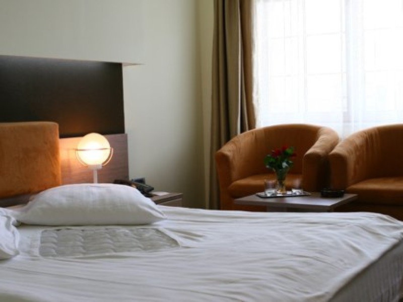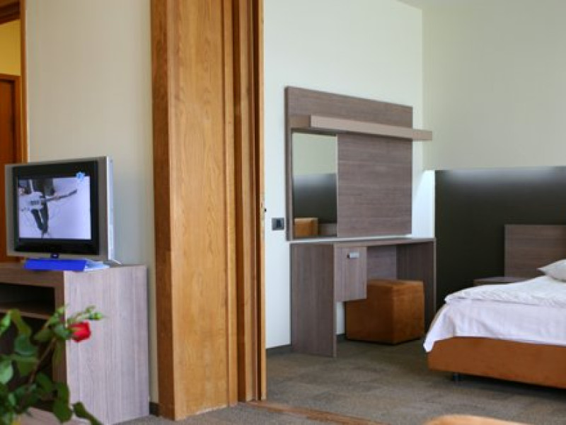 Hotelul dispune de 62 locuri de cazare, repartizate in 6 camere single, 18 camere duble si 7 apartamente. Camerele moderne, complet echipate pentru a face si pe cei mai exigenti clienti sa se simta confortabil, sunt o oaza a bunului gust. In cadrul hotelului va oferim o gama vasta de servicii cum ar fi: vanzarea de obiecte de arta, ziare, articole de stricta necesitate, inchirieri jocuri distractive, comisioner, spalat-calcat lenjerie, pastrarea obiectelor de valoare, servicii de xerox si fax, inchiriere echipament sportiv. Cele 18 camere duble twin sunt dotate cu televizor, telefon, radio, minibar, baie cu cada. Dispuse pe trei nivele, pot fi cazate si in regim single. Camerele mansarda dispun de aer conditionat si baie cu dus. Hotelul dispune si de 6 camere, cu pat matrimonial, dotate cu baie cu cada, televizor, telefon, radio, minibar, dispuse pe doua etaje. Apartamentele in numar de 7 sunt dispuse pe fiecare nivel si dispun de un dormitor, living, hol, baie, televizor, telefon, radio, minibar. Apartamentele mansarda dispun de un spatiu generos, aer conditionat si baie cu dus.