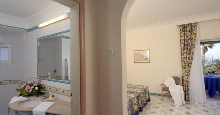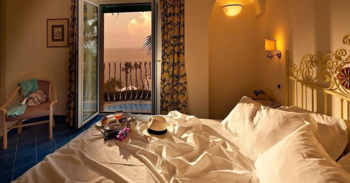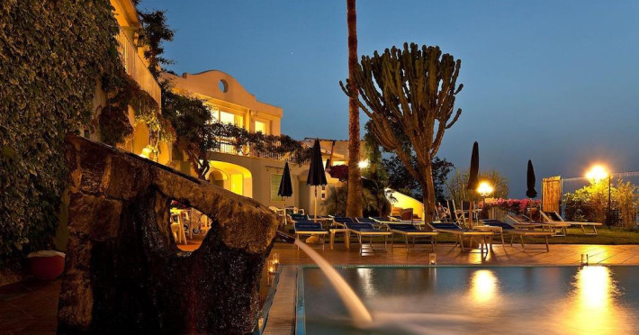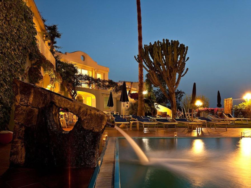 Facilities and services include restaurant, bar, garden, swimming pool, parking, WiFi, 24-hour reception, spa and wellness center (extra charge).Rooms feature telephone, TV, safe, minibar (extra charge), air conditioning, WiFi, hairdryer and bathroom.Junior Suites and Family comfort rooms also feature living room.Please note that some of the above facilities may be closed due to weather / seasonal conditions.Please note: -Small sized dogs are allowed (with extra charge)-Baby cot is on request (with extra charge)Please note: Mandatory Gala Dinner Supplement is payable on the spot on August 14th.Address: Via Baldassarre Cossa 25, 80077 Ischia Porto, Italy.