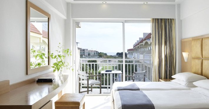Facilities and services include 24-hour reception, lobby, elevator, TV corner, restaurant, bars, gym, pool table (extra charge), swimming pool. Rooms feature satellite TV, fridge, air conditioning, saftey box, hairdryer, complimentary Wi-Fi and balcony/terrace. Please note that the air conditioning and the Wi-Fi are free of charge from June to September.Address: Belgium Str, Kolymbia, 85103 Rhodes, Greece