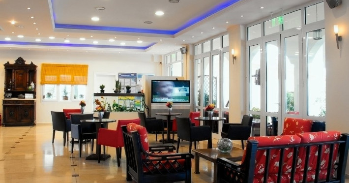 Facilitati hotel: Receptie deschisa 24 de ore pe zi, cutie de valori (taxa suplimentara de 10 EUR pe saptamana), camera de bagaje, hol, lounge cu ecran mare cu TV prin satelit, Wi-Fi in toate zonele (gratuit), piscina in aer liber (09:00-19:00), sezlonguri si umbrele (gratuit) la piscina, cu taxa la plaja), terasa, serviciu de transfer aeroport (la cerere cu taxa), parcare (gratuit), medic de garda (contra cost), prim ajutor.