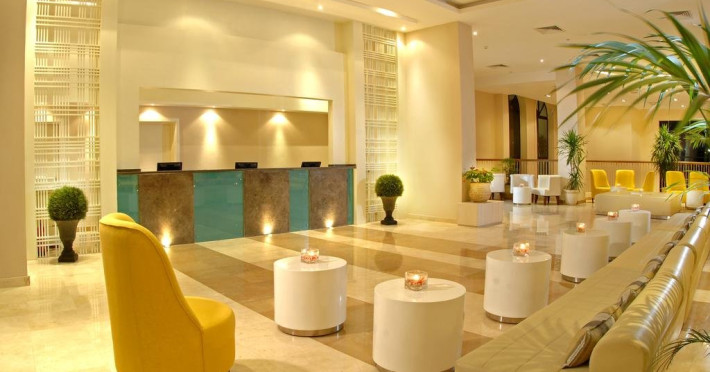 Facilitati hotel: Lobby Bar cu internet Wi-FI gratuit, sala de fitness complet echipat, jacuzzi interior, salon de coafura, piscina exterioara, parc acvatic, piscina pentru copii, sala de jocuri, 3 restaurante a la carte, magazine suveniruri, servicii de spalatorie, tenis de masa, amfiteatru, sezlonguri, umbrele si prosoape, farmacie in apropiere, clinica, parcare.