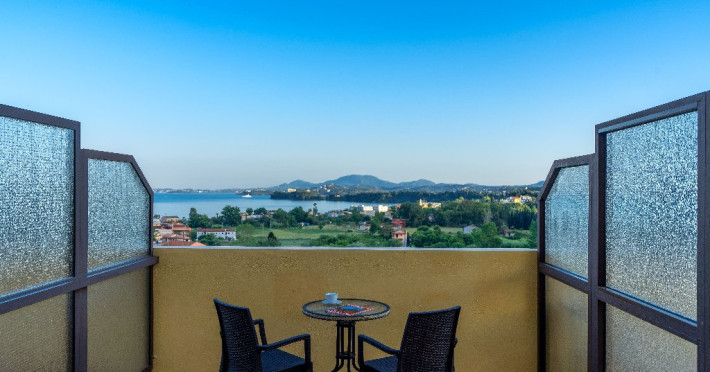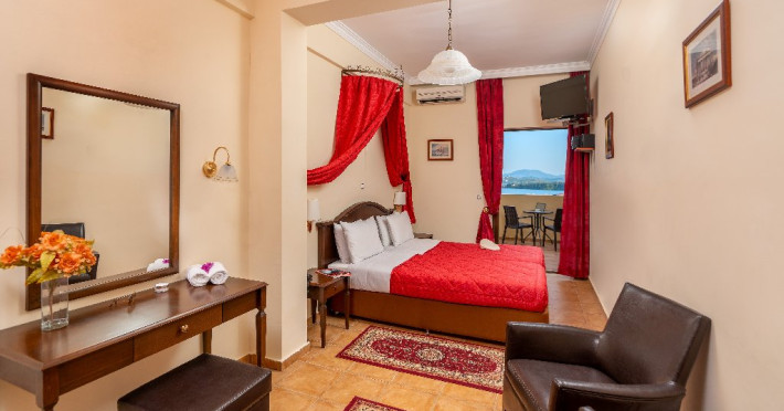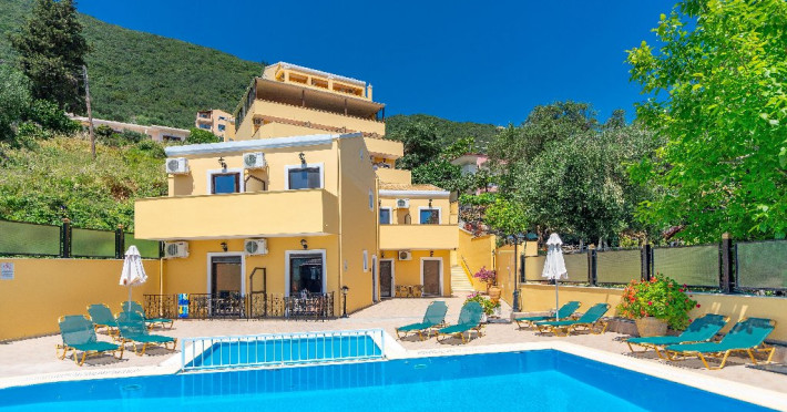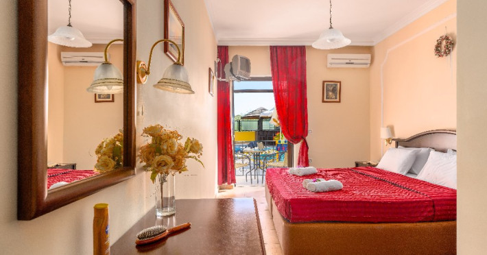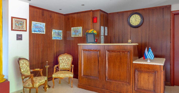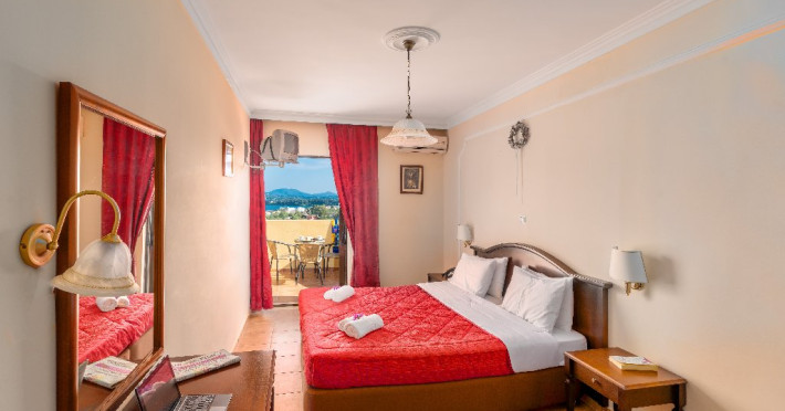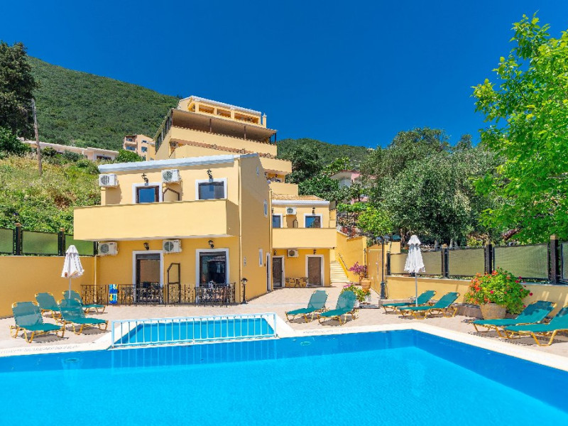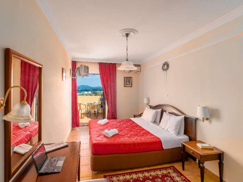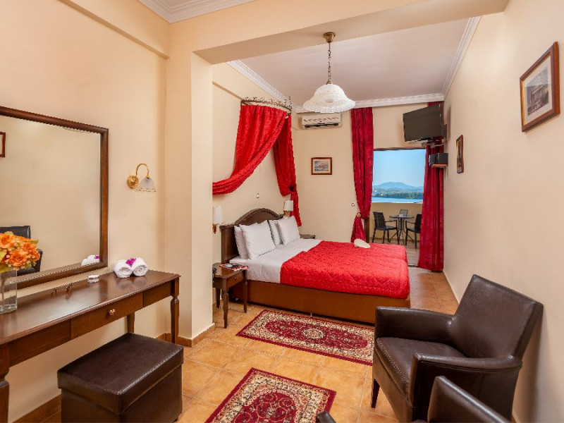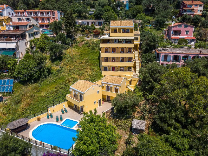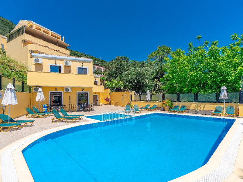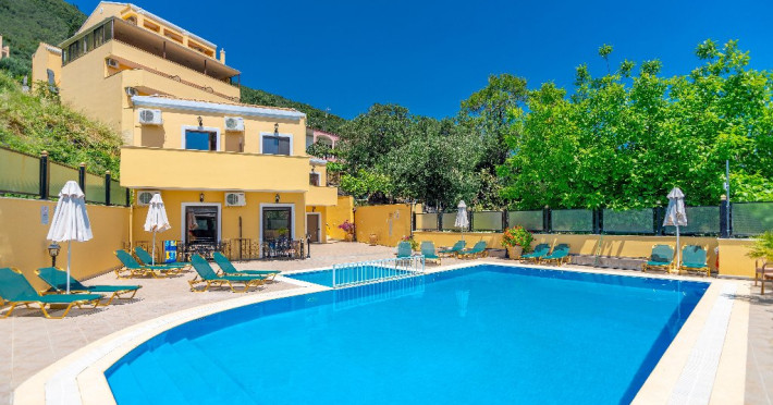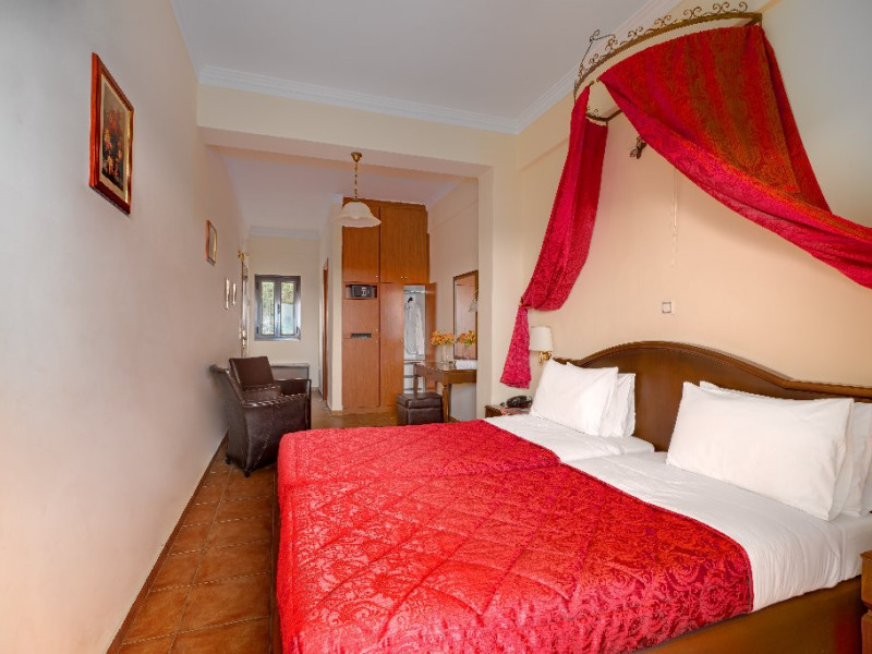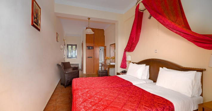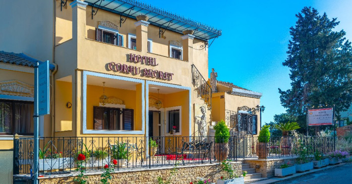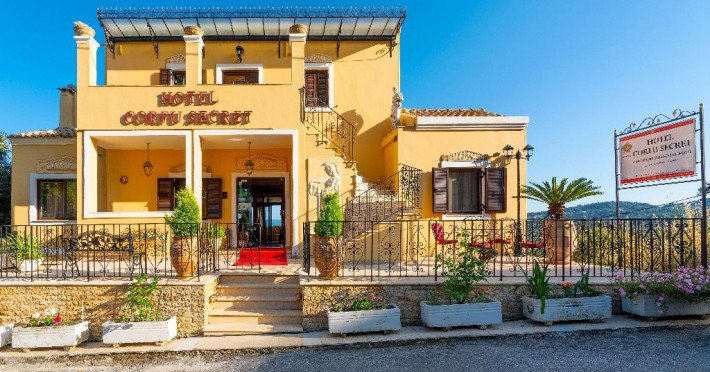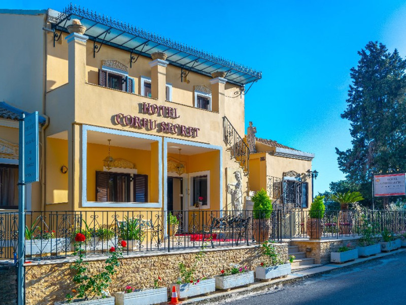 CORFU SECRET HOTEL - 3* Corfu Secret Hotel enjoys quiet lush surroundings in the traditional village of Agios Markos, about 600 m from the beach of Ipsos and 16 km from Corfus international airport. This is a charming boutique hotel combining a Neo-classical facade with traditional Corfiot colors, authentic antiques, breathtaking views and a relaxing family environment. Accommodation options include double rooms and two-bedroom family rooms, all equipped with complimentary air condition, Wi-Fi, satellite TV and a furnished balcony or terrace with pool views or panoramic views. Guests can also enjoy two bars and a swimming pool. This hotel is not suitable for disabled guests. Official category: 3 stars ACCOMMODATION 23 units in total: Standard Double Room - approx. 15 m2 (max 2 pax: 2 twin beds or 1 double bed): standard accommodation facilities & services Double Room Panoramic View - approx. 15 m2 (max 2 pax: 2 twin beds or 1 double bed): standard accommodation facilities & services Luxury Double Room Panoramic View - approx. 18 m2; located on the top floor (max 2 pax: 2 twin beds): standard accommodation facilities & services plus Hi-Fi system (with MP3/MP4 player) Family Room Pool View - approx. 23 m2; located on the lowest floor; 2 separate bedrooms (max 3 or 2+2 pax: 2 twin beds, 1 semi-double bed): standard accommodation facilities & services Standard accommodation facilities & services: individual air-conditioning/heating (free), Wi-Fi (free), direct-dial telephone, electronic safety deposit box (extra charge), TV (with satellite channels), mini fridge, mini bar (on request with extra charge), shower/WC, hairdryer, bathroom amenities, balcony/terrace, wake-up service, room service (extra charge), maid service (daily), towel change (3 times per week), linen change (3 times per week), laundry/dry cleaning/ironing service (extra charge) GENERAL FACILITIES & SERVICES Reception (09:00-00:30), lounge, lobby, Wi-Fi in public areas (free), outdoor swimming pool (07:30-20:30), pool sunbeds & umbrellas (free), sun terrace, airport transfer service (on request with extra charge), public parking, doctor on call (extra charge) FOOD & BEVERAGE/BOARDING TYPE (BB) Breakfast lounge, lounge bar, pool snack bar Bed & Breakfast Breakfast is continental buffet (08:00-10:00) CHILDREN & INFANTS Baby cot (on request, free of charge), high chair (on request), separated childrens pool (07:30-20:30) ACCEPTED CREDIT CARDS Visa, MasterCard ADDITIONAL INFORMATION The operation of certain outdoor venues & facilities is subject to weather conditions Pets are not allowed WEBSITE: https://www.corfusecret.gr/