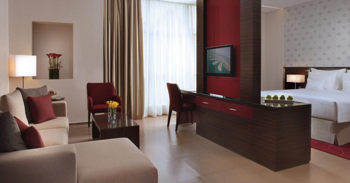Dotari camere: Fiecare dintre cele 114 camere si apartamente spatioase ale hotelului Cosmopolitan Dubai este decorata si mobilata intr-o tema moderna, are TV cu ecran plat de 32'-42', un birou de lucru si un scaun executive, cuptor cu microunde, facilitati pentru prepararea de ceai si cafea, iPod docking station, seif personal si mini-frigider. Fiecare baie are cada, uscator de par si articole de toaleta gratuite.