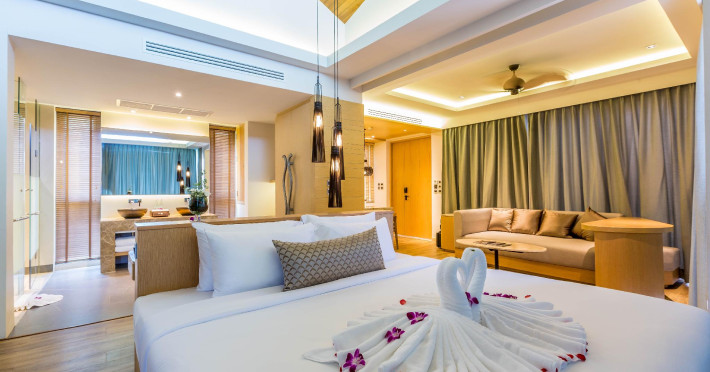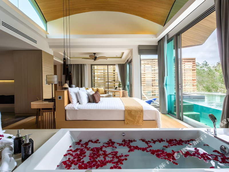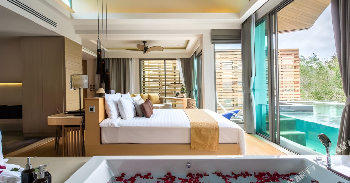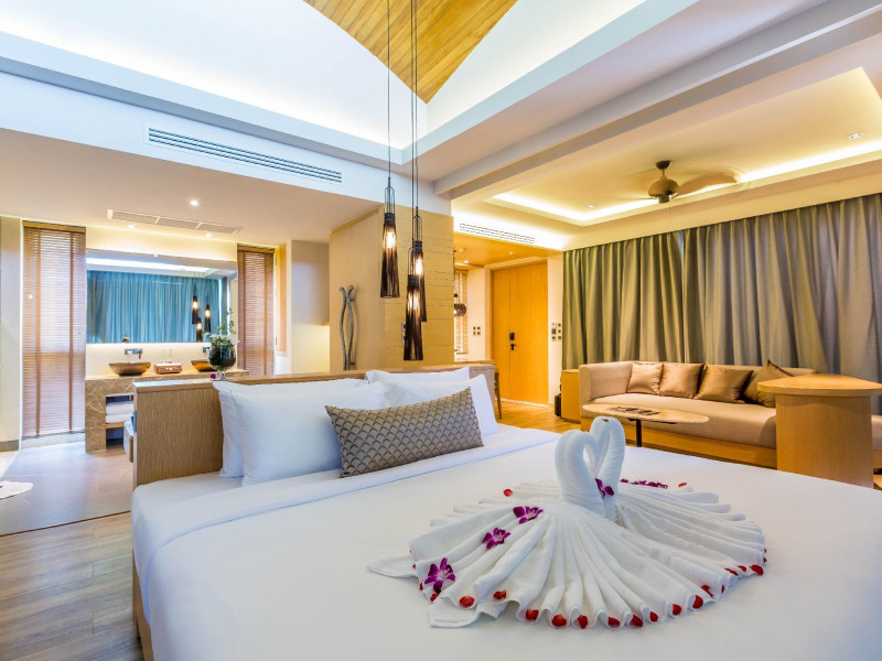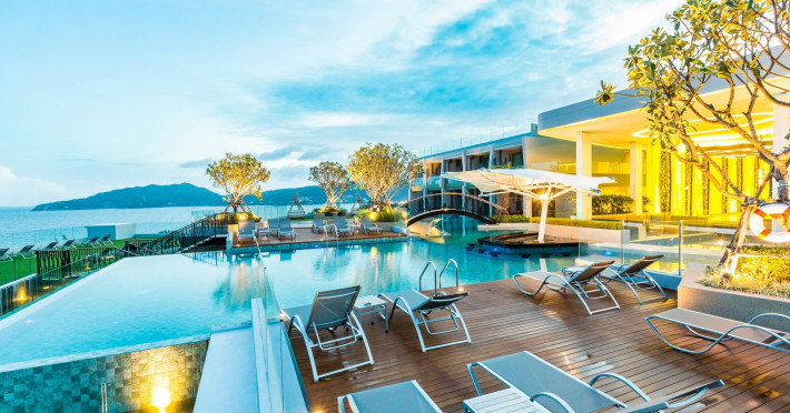 Crest Resort & Pool Villas is a luxury eco-designed resort on Tri Trang Beach, just outside Patong, offering stunning 240° views of the Andaman Sea. The resort features an outdoor pool, a full-service spa with massages and facials, a steam room, and a fitness center. Guests can enjoy international cuisine at Atmos, one of the resort's two restaurants, and utilize 24-hour room service. Two bars/lounges and a poolside bar are also available. Continental/buffet breakfasts are available for a fee. Amenities include complimentary Wi-Fi, concierge services, barbecue grills, a business center, complimentary newspapers, dry cleaning/laundry services, and free self parking. A 24-hour airport shuttle is available for a surcharge. Rooms feature air conditioning, refrigerators, LCD televisions, satellite/cable programming, showers with rainfall showerheads, and complimentary toiletries. Some rooms offer private pools and private furnished patios. The resort is a 4-minute drive from Patong Beach and a 5-minute drive from Bangla Road. Renovations to the lobby are planned from June 20, 2025, to July 20, 2025 (dates subject to change). The resort is approximately 36 km from Phuket International Airport (HKT). Nearby beaches include Tri Trang, Merlin, Freedom, Patong, Paradise, and others within a 4 km radius. Karon and Kata Beaches are further afield. The Crest Resort and Pool Villas is a hotel.