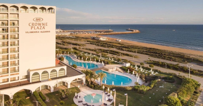 Descriere: Crowne Plaza Vilamoura este un hotel elegant de 5 stele, potrivit atat pentru vacante de relaxare, cat si pentru calatorii de afaceri. Unitatea ofera o atmosfera moderna si confortabila, cu spatii generoase, gradina amenajata si acces direct la plaja. Oaspetii beneficiaza de servicii de calitate, facilitati de wellness si optiuni variate pentru petrecerea timpului liber, intr-un cadru placut si bine intretinut. Localizare: Hotelul este situat pe malul marii, in statiunea Vilamoura, cu acces direct la plaja si in apropierea portului de agrement. Zona ofera acces facil catre terenuri de golf, restaurante, magazine si alte puncte de interes, iar aeroportul din Faro se afla la aproximativ 25 de kilometri. Dotari camera: Camerele sunt spatioase si luminoase, dotate cu aer conditionat, Wi-Fi gratuit, TV, seif si birou de lucru. Fiecare camera dispune de baie proprie cu cada sau dus, uscator de par si articole de toaleta. Majoritatea camerelor au balcon sau terasa, unele cu vedere catre mare. Suitele ofera spatii suplimentare de relaxare si zone de living separate. Facilitati hotel: Hotelul pune la dispozitie Wi-Fi gratuit in toate zonele, receptie deschisa permanent, parcare gratuita si statii de incarcare pentru masini electrice. Oaspetii au acces la piscina exterioara, centru de fitness si spa cu diverse tratamente de relaxare. Exista restaurante si baruri care ofera preparate din bucataria locala si internationala, precum si spatii dedicate pentru conferinte si evenimente. Site web: https://www.ihg.com/crowneplaza/hotels/us/en/vilamoura/faovi/hoteldetail Nota informativa: Pentru anumite facilitati din hotel sau din camera, hotelierul poate solicita taxe suplimentare. In momentul sosirii la hotel solicitati receptionerului sa va informeze cu exactitate asupra lor. Taxa turistica obligatorie se plateste la receptie.