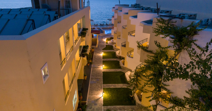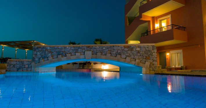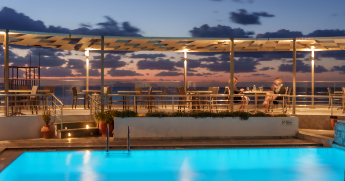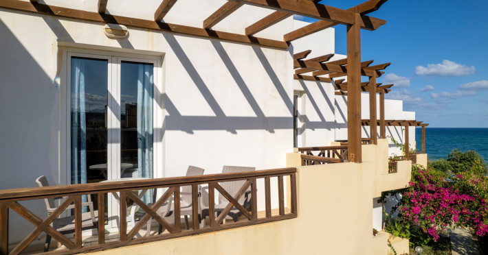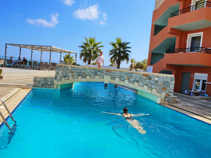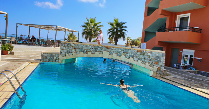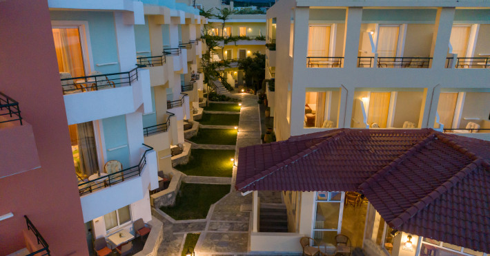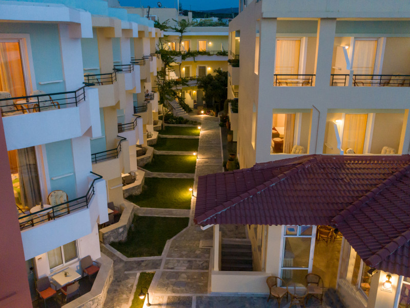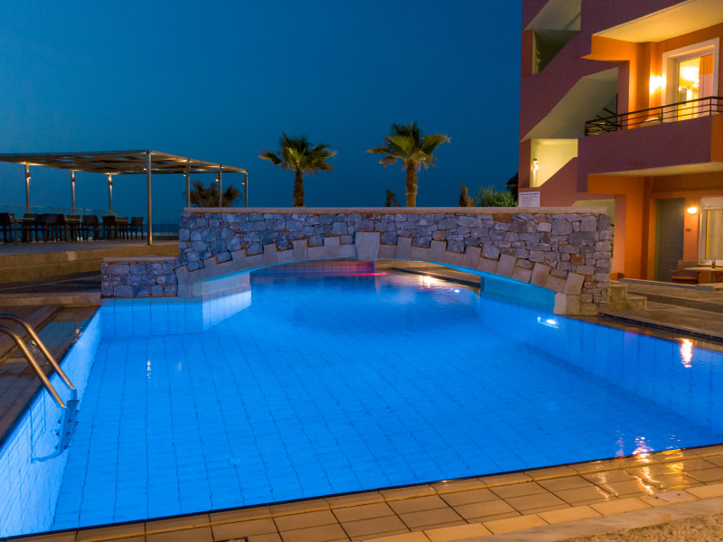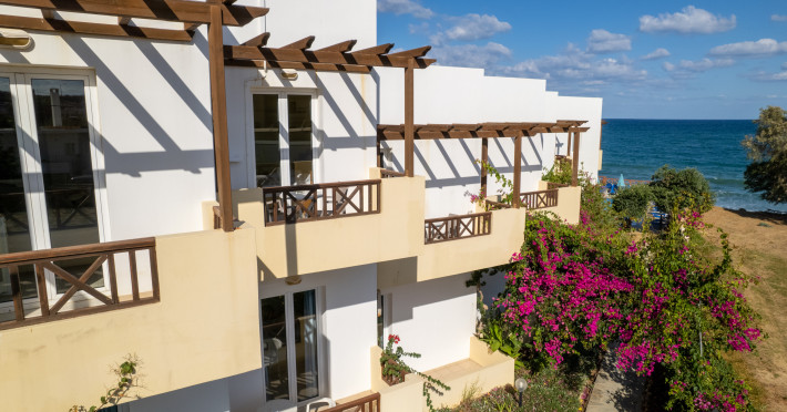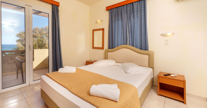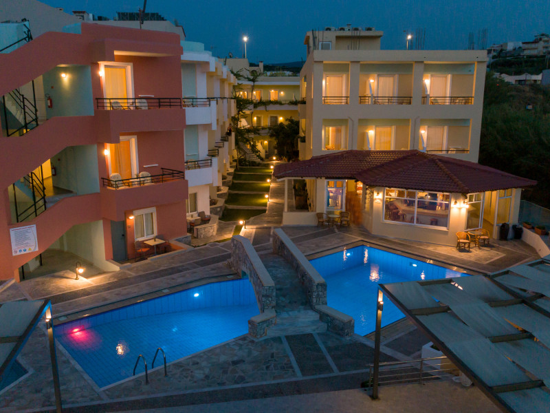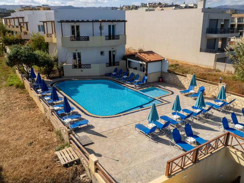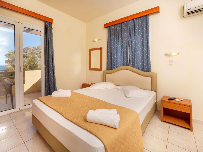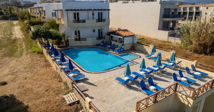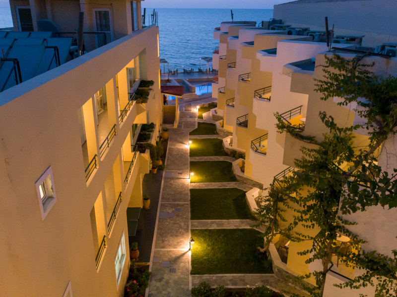 The hotel is ideally located in front of the beach of the picturesque village Sfakaki - it is only 10 minutes drive away from the city of Rethymno (9 km) and 45 minutes from the International Airport of Heraklion.