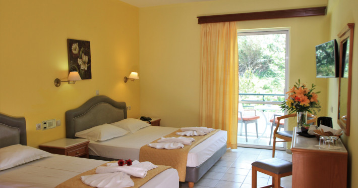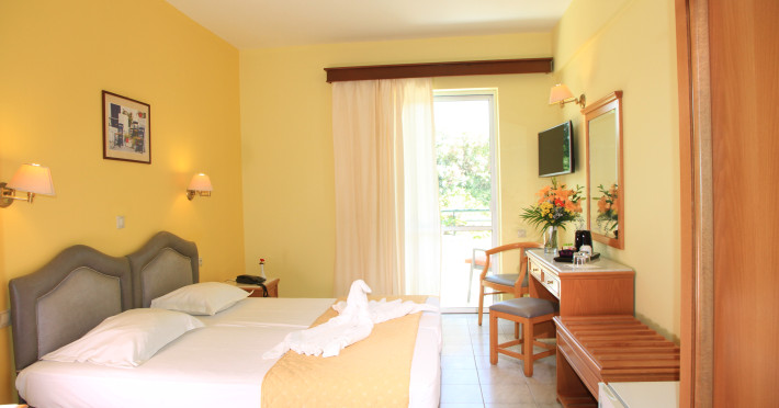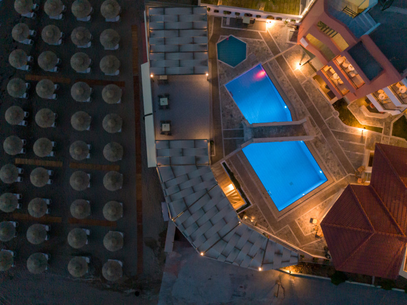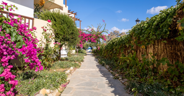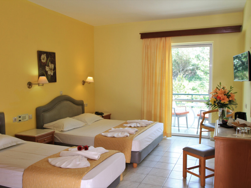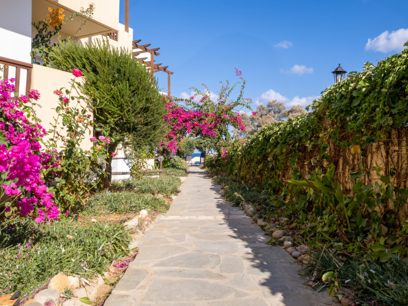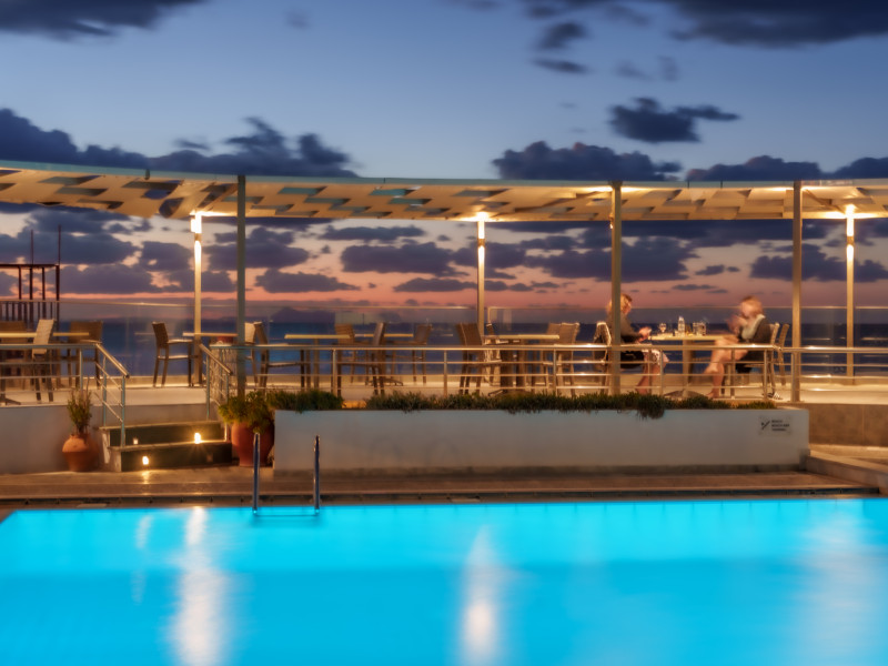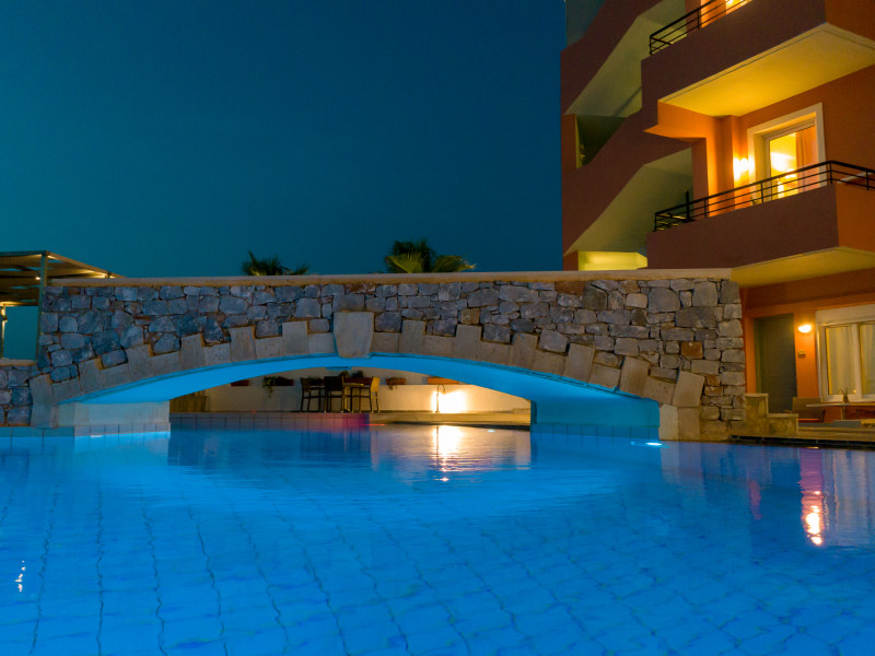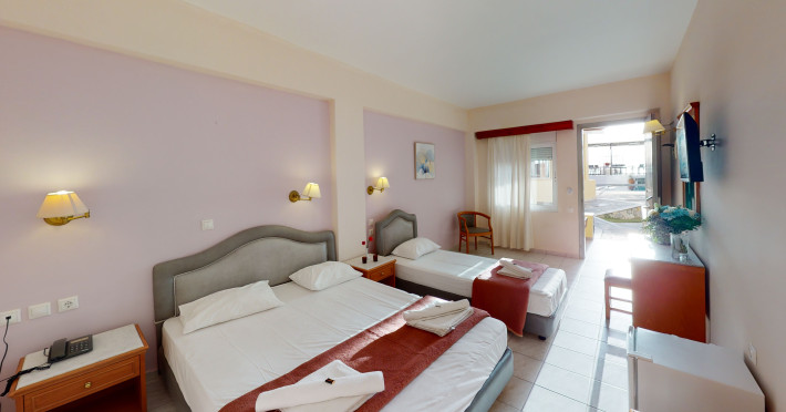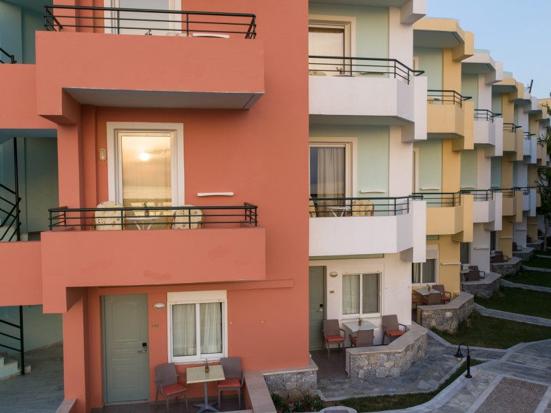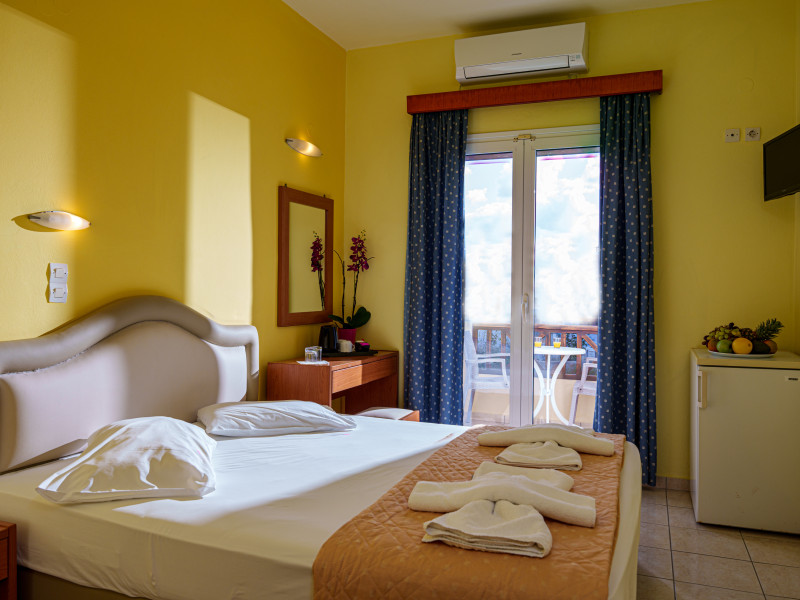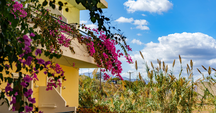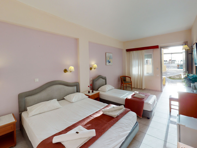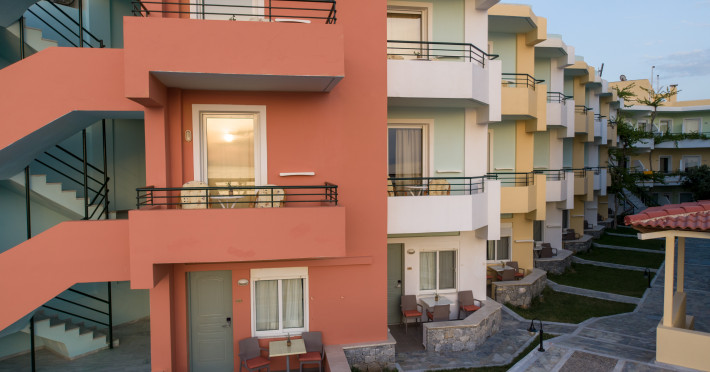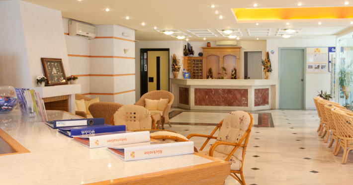 The hotel is ideally located in front of the beach of the picturesque village Sfakaki - it is only 10 minutes drive away from the city of Rethymno (9 km) and 45 minutes from the International Airport of Heraklion.