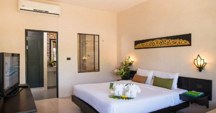 Descriere hotel: un hotel situat in imediata apropiere a strazii Bangla Road, centrul distractiei din Patong, dar in acelasi timp o oaza de relaxare cu gradini tropicale pentru cei in cautarea unei vacante linistite. Localizare: Hotelul Deevana Patong Resort & Spa este localizat in partea de sud vest a insulei Phuket, la 800 m de plaja Patong, principala plaja a insulei, la 40 km de aeroport, intr-o zona animata cu magazine, restaurante, baruri etc. Camere: 235 camere decorate in stil thailandez modern cu: balcon cu vedere la gradina, Wi-fi (gratuit), TV cu canale prin satelit, aer conditionat, frigider, seif, baie spatioasa cu dus, uscator de par, facilitati pentru preparare ceai/cafea, telefon, 1 pat matrimonial sau 2 paturi twin. Camerele superior au o suprafata de 27 mp si au vedere spre gradina Facilitati : 2 piscine in aer liber (pentru aduti si copii), jacuzzi, 2 restaurante, bar la piscina, Wi-fi gratuit, sala de conferinte, parcare, aer conditionat. Restaurantul Dalah serveste mic dejun tip bufet precum si o gama variata de mancaruri specific thailandeze si internationale.